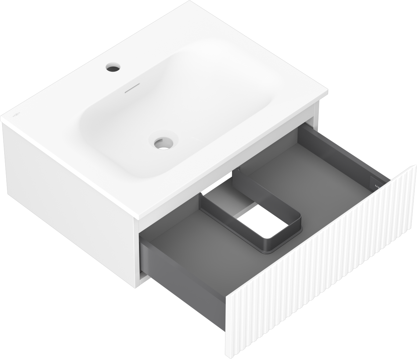 Il ritaglio nel cassetto è progettato in modo da ospitare il sifone, che è necessario nelle installazioni dei lavandini. Grazie a ciò, il mobile può essere montato in modo completamente funzionale, senza dover rinunciare allo spazio nel cassetto a favore dell'installazione.