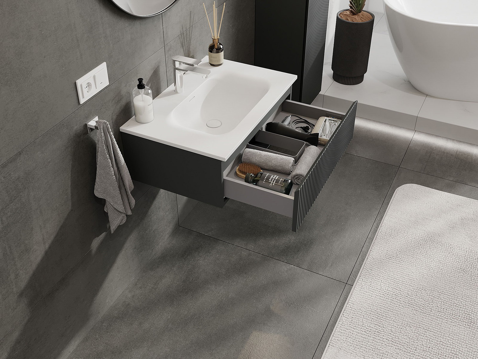 Mexen Rivel mobile bagno 70 cm con lavabo Vela, 1 cassetto, scanalato, grafite opaco/bianco opaco - 91A20-07023-1-BF66-W23M01