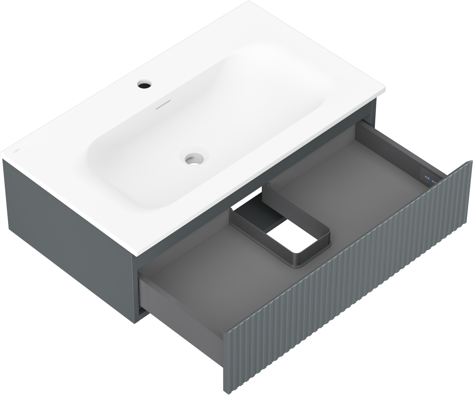 Il ritaglio nel cassetto è progettato in modo da ospitare il sifone, che è necessario nelle installazioni dei lavandini. Grazie a ciò, il mobile può essere montato in modo completamente funzionale, senza dover rinunciare allo spazio nel cassetto a favore dell'installazione.