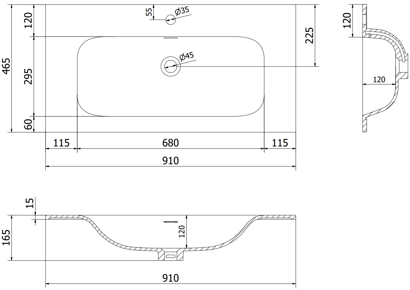 Dimensioni del lavandino: