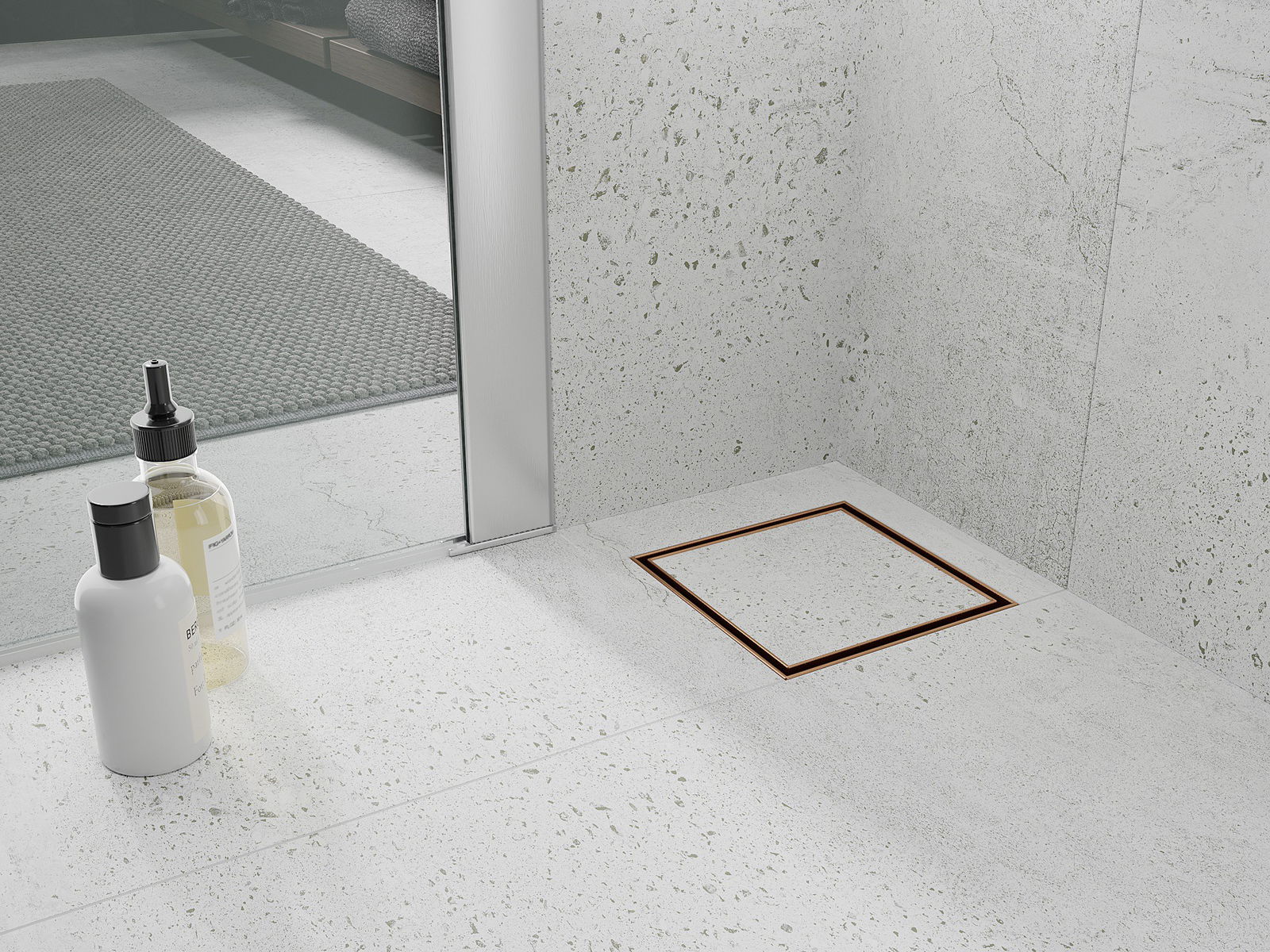 Mexen Flat-Q M13 scarico a pavimento quadrato 12 x 12 cm, rame spazzolato - 1C10012