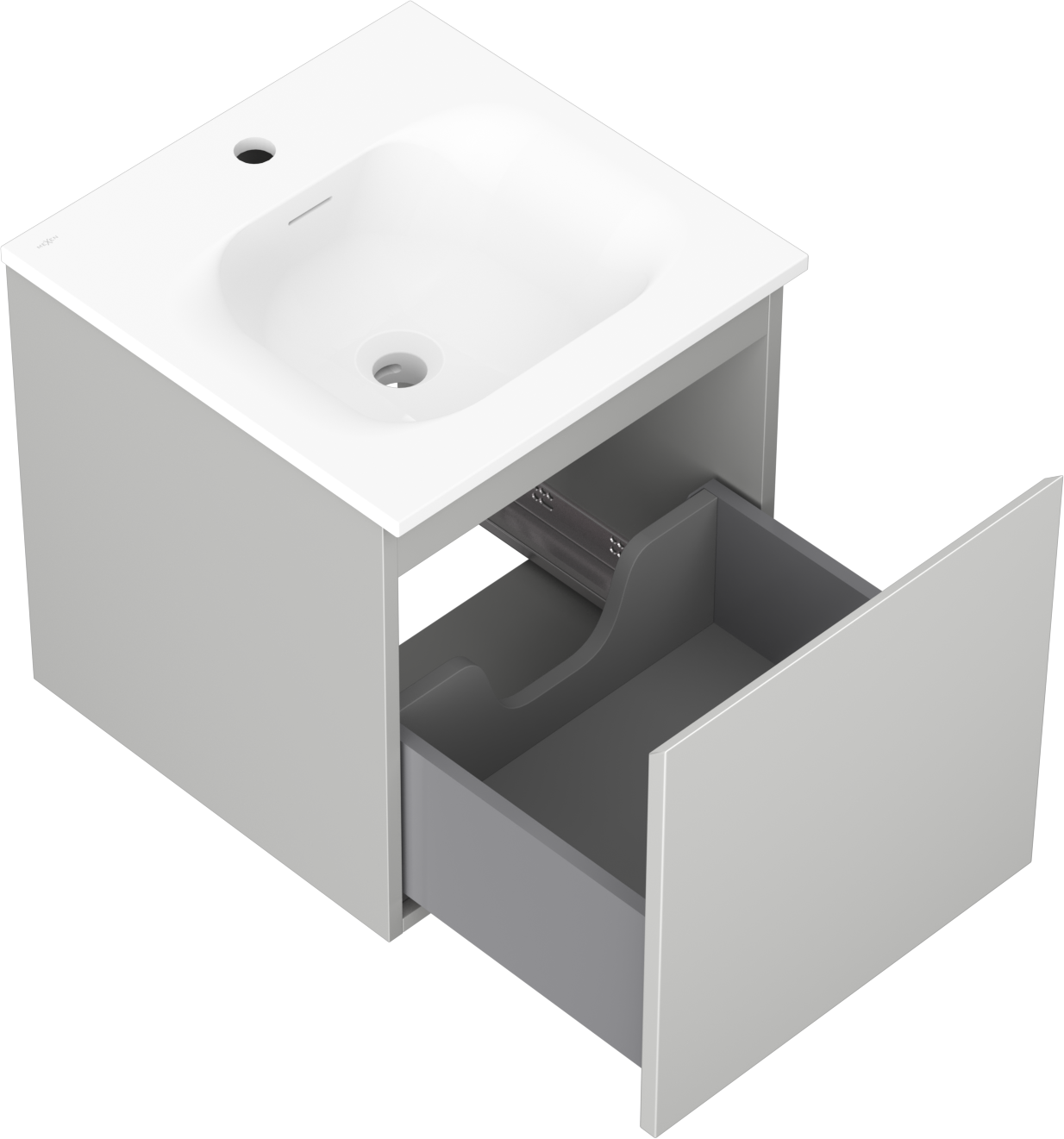 Il ritaglio nel cassetto è progettato in modo da ospitare il sifone, che è necessario nelle installazioni dei lavandini. Grazie a ciò, il mobile può essere montato in modo completamente funzionale, senza dover rinunciare allo spazio nel cassetto a favore dell'installazione.