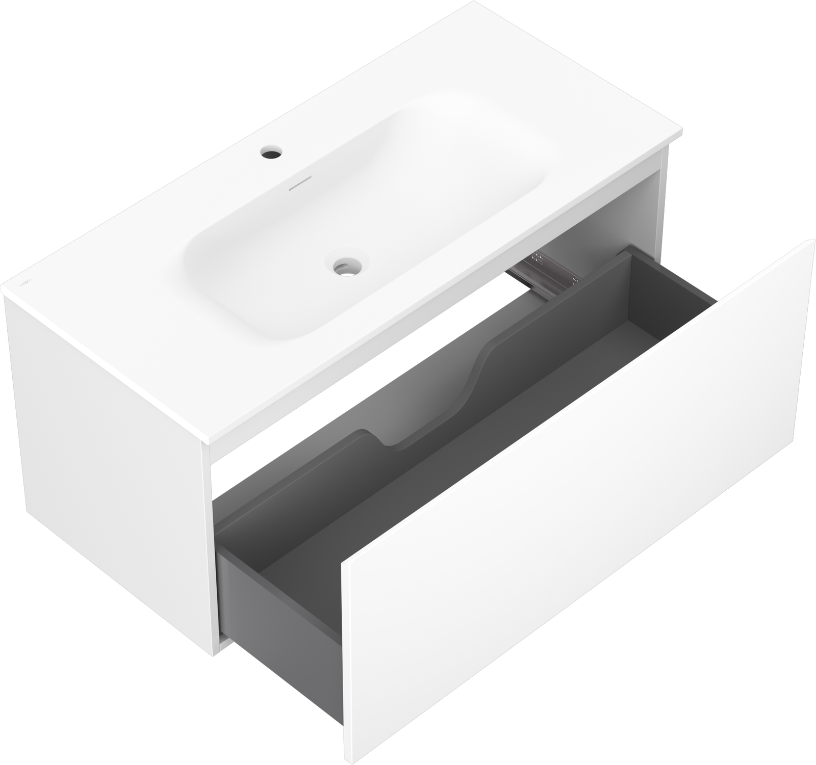 Il ritaglio nel cassetto è progettato in modo da ospitare il sifone, che è necessario nelle installazioni dei lavandini. Grazie a ciò, il mobile può essere montato in modo completamente funzionale, senza dover rinunciare allo spazio nel cassetto a favore dell'installazione.