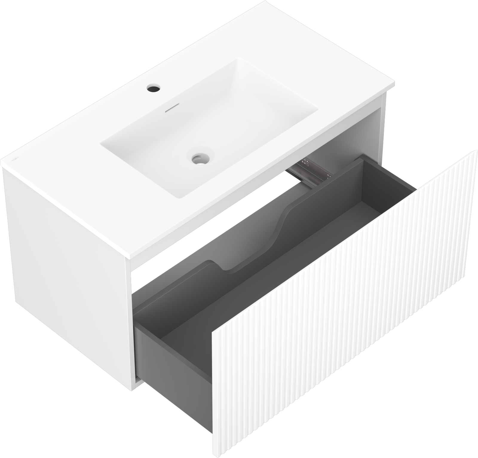 Mexen Rivel mobiletto da bagno 90 cm con lavabo Otis, 1 cassetto, scanalato, bianco opaco - 91A20-09047-1-BF01-W18M01