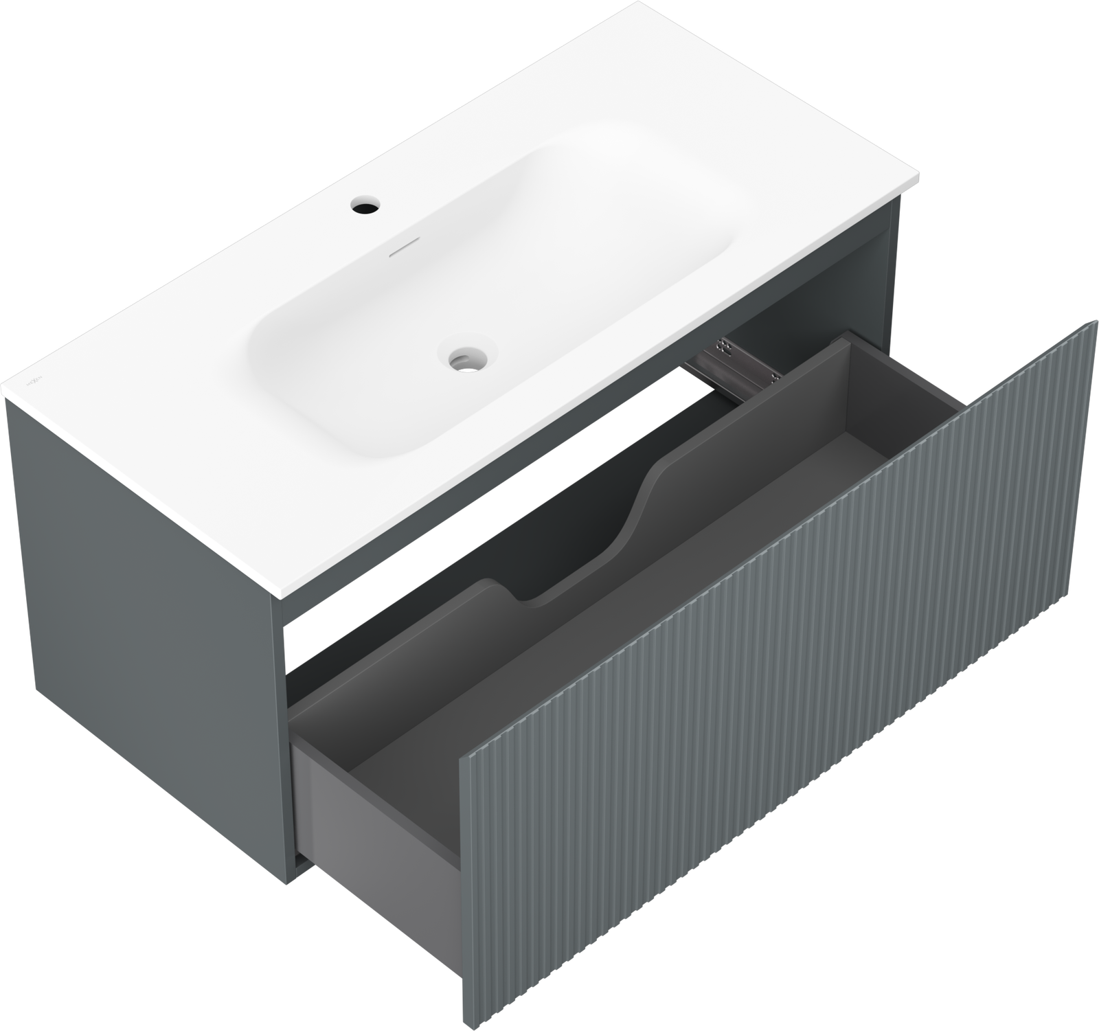 Il ritaglio nel cassetto è progettato in modo da ospitare il sifone, che è necessario nelle installazioni dei lavandini. Grazie a ciò, il mobile può essere montato in modo completamente funzionale, senza dover rinunciare allo spazio nel cassetto a favore dell'installazione.