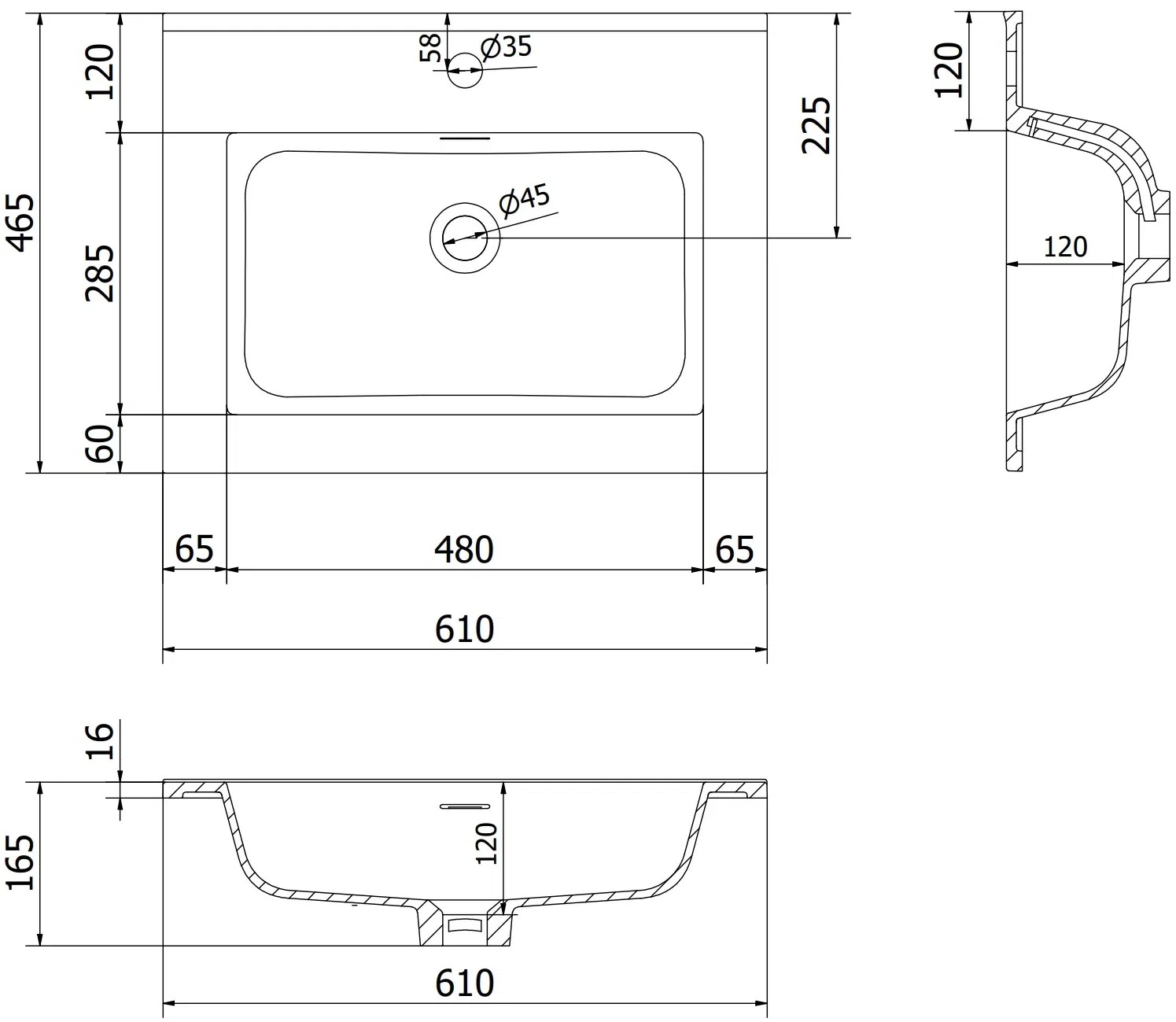 Dimensioni del lavabo: