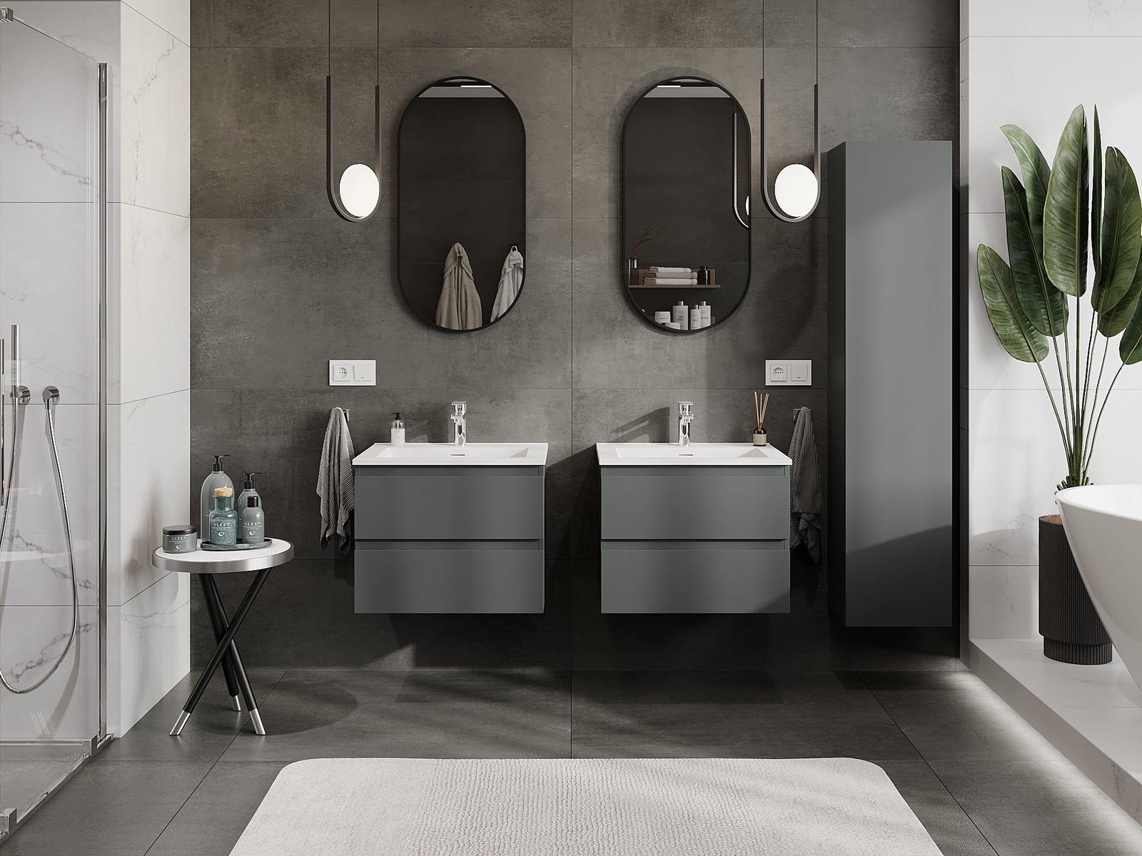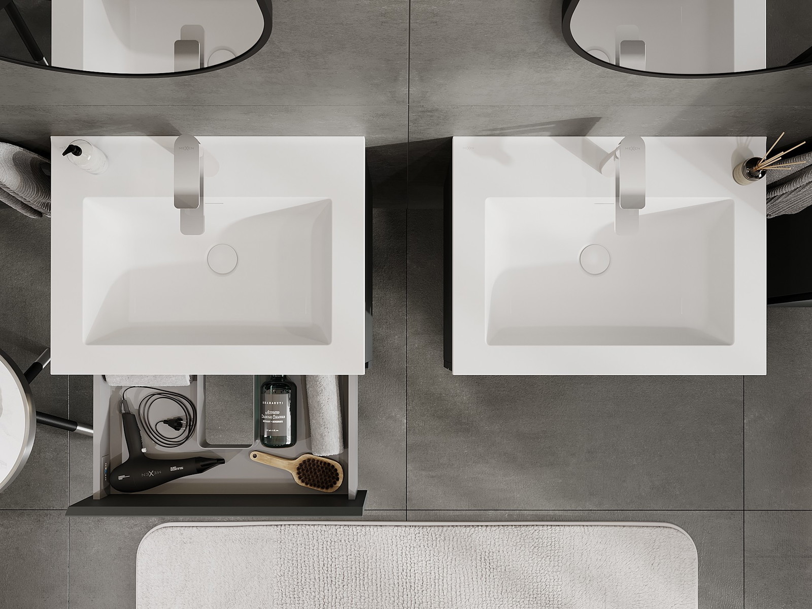 Mexen Orio mobiletto da bagno 60 cm con lavabo Otis, 2 cassetti, grafite opaco/bianco opaco - 91A10-06047-2-BFF66-W18M01