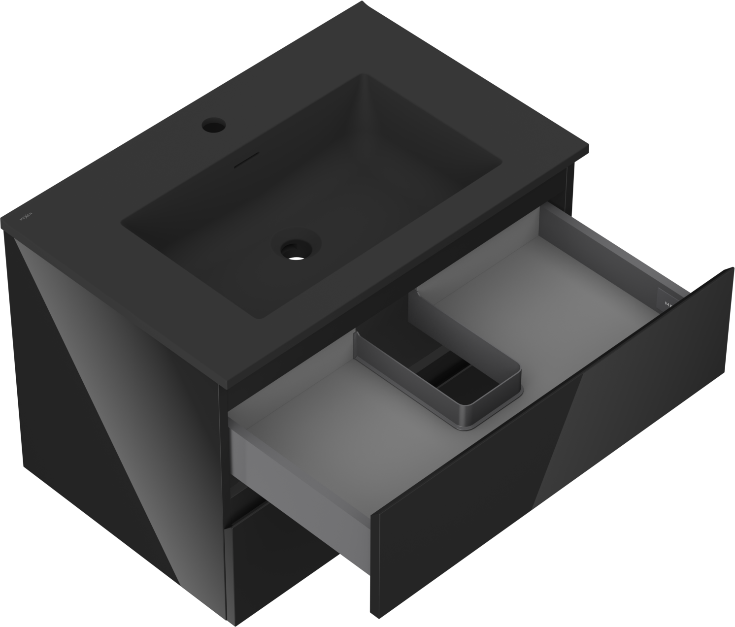 Mexen Orio mobile da bagno 70 cm con lavabo Otis, 2 cassetti, nero lucido/nero opaco - 91A10-07047-2-BFF70-W18M71