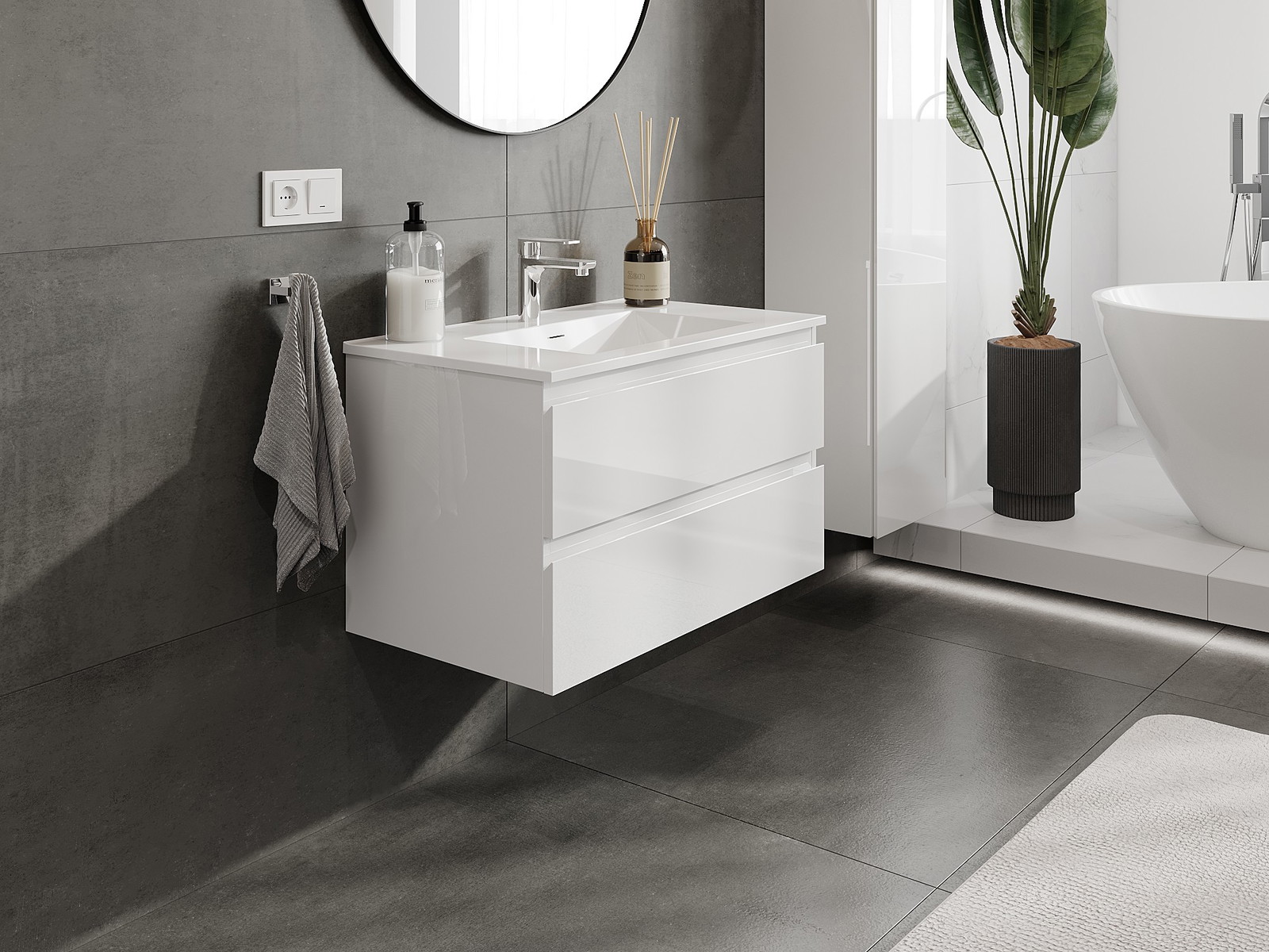 Mexen Orio mobile da bagno 80 cm con lavabo Otis, 2 cassetti, bianco lucido - 91A10-08047-2-BFF00-W18M00