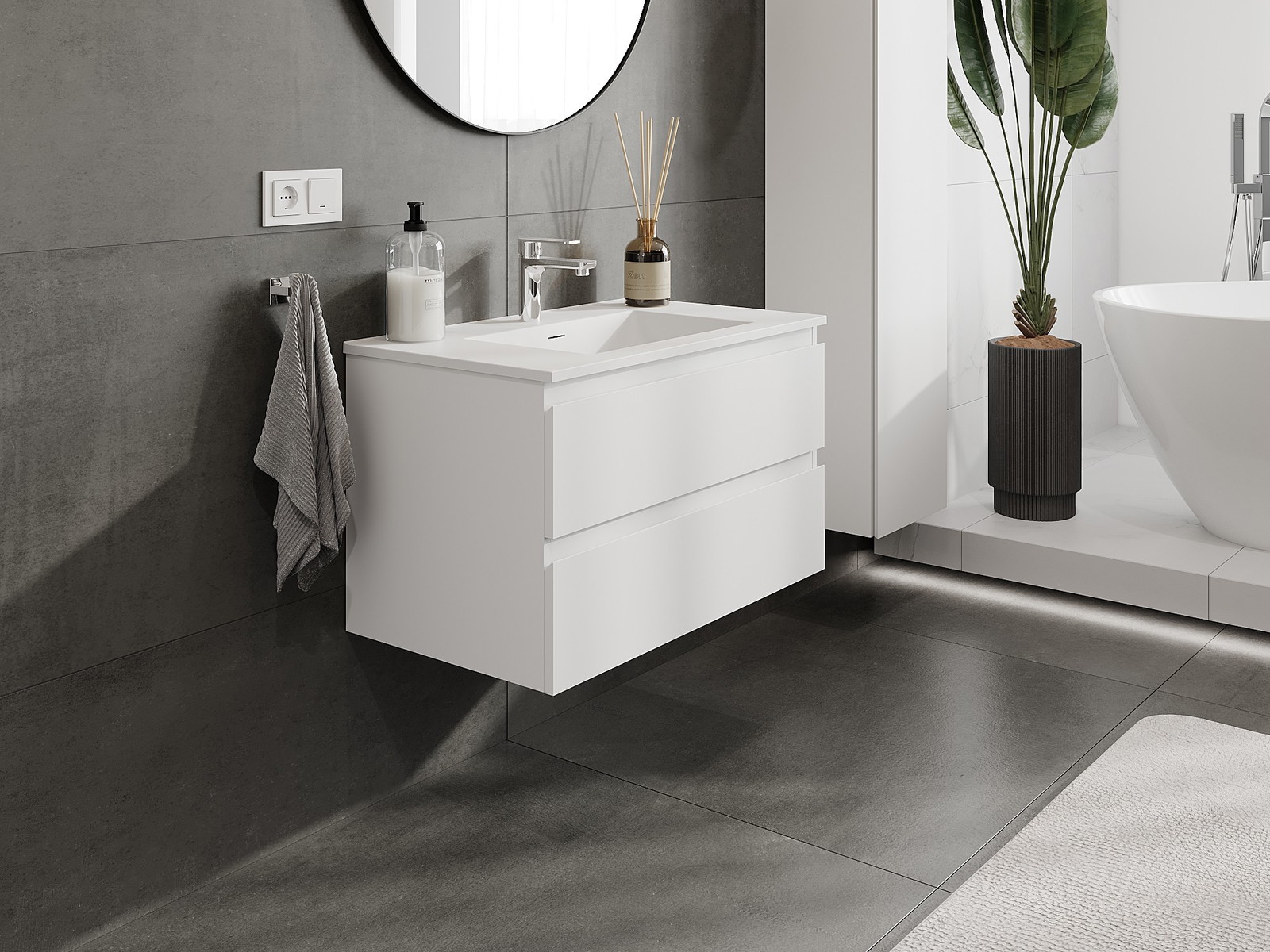 Mexen Orio mobile da bagno 80 cm con lavabo Otis, 2 cassetti, bianco opaco - 91A10-08047-2-BFF01-W18M01