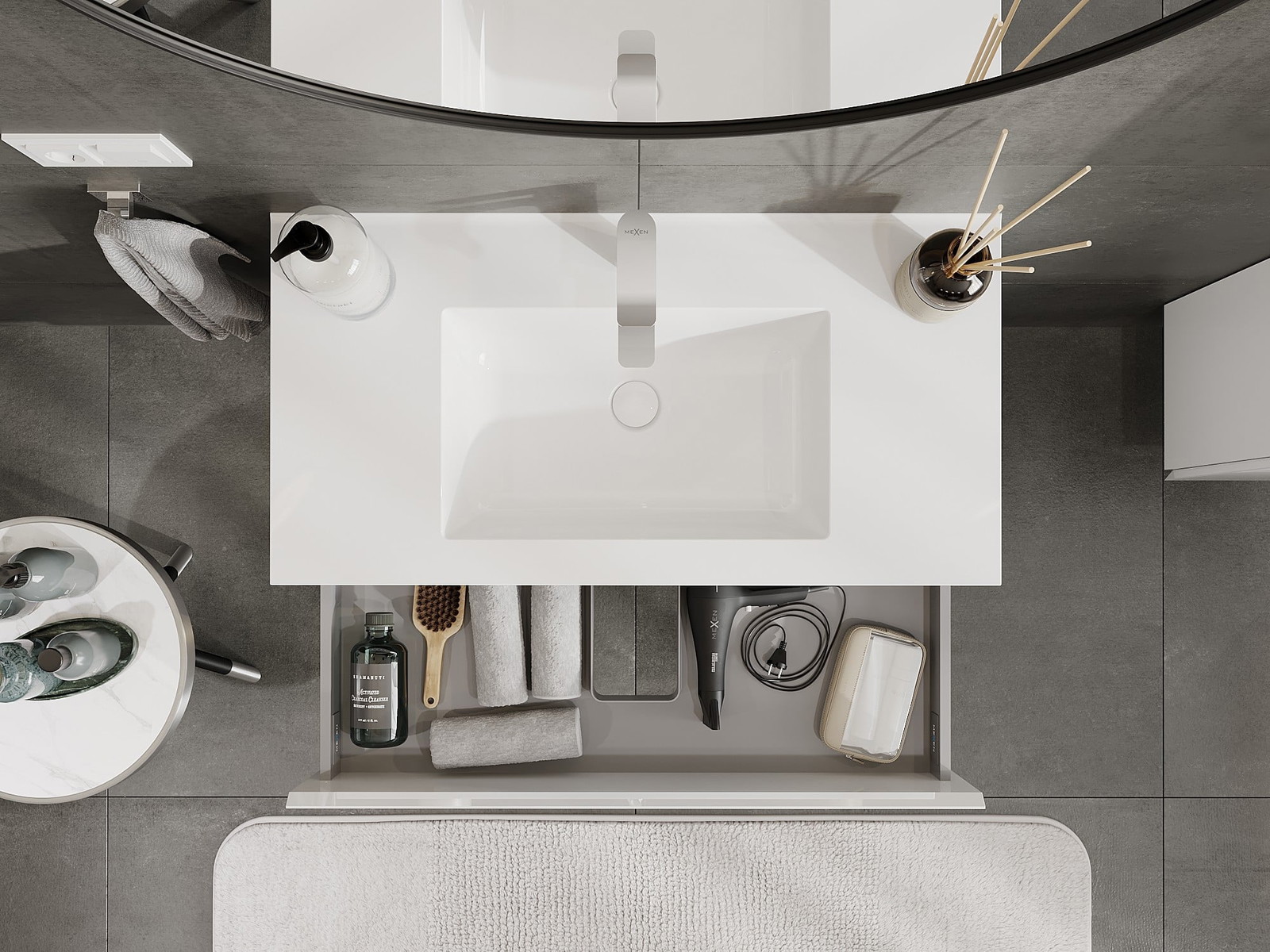 Mexen Orio mobile da bagno 90 cm con lavabo Otis, 2 cassetti, bianco lucido - 91A10-09047-2-BFF00-W18M00