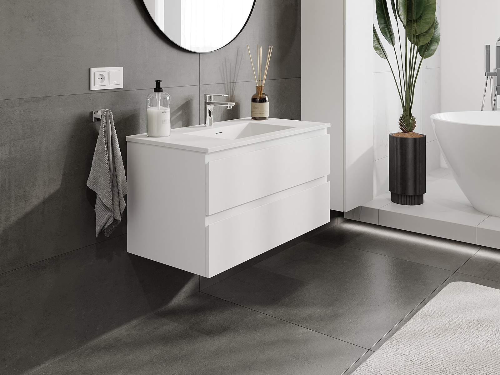 Mexen Orio mobile da bagno 90 cm con lavabo Otis, 2 cassetti, bianco opaco - 91A10-09047-2-BFF01-W18M01