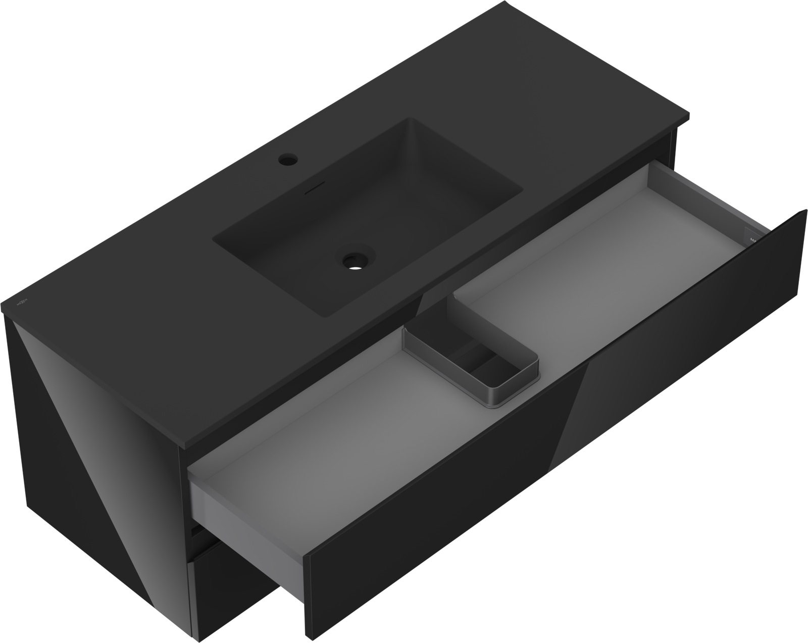 Mexen Orio mobile da bagno 120 cm con lavabo Otis, 2 cassetti, nero lucido/nero opaco - 91A10-12047-2-BFF70-W18M71
