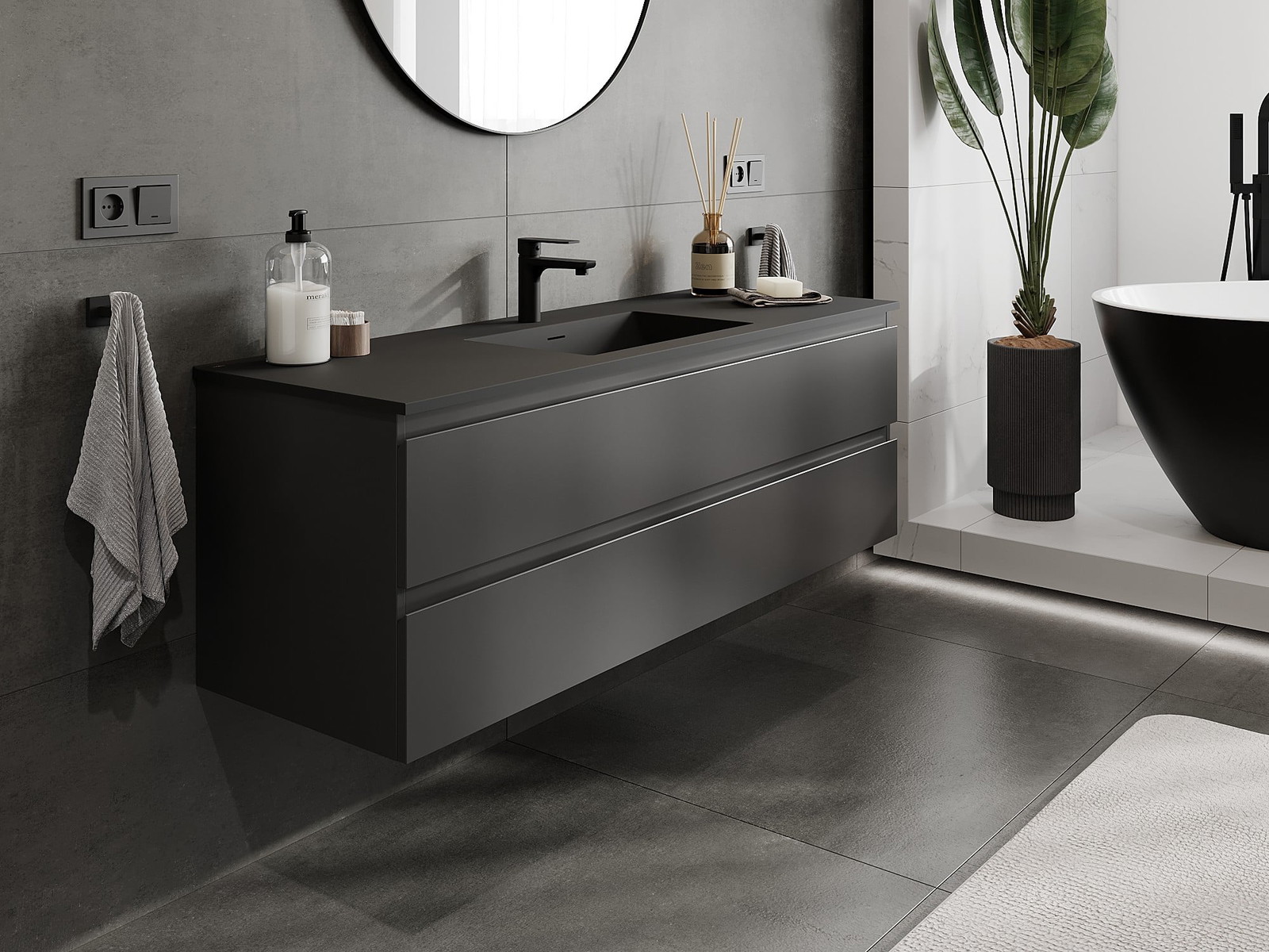 Mexen Orio mobile da bagno 140 cm con lavabo Otis, 2 cassetti, nero opaco - 91A10-14047-2-BFF71-W18M71