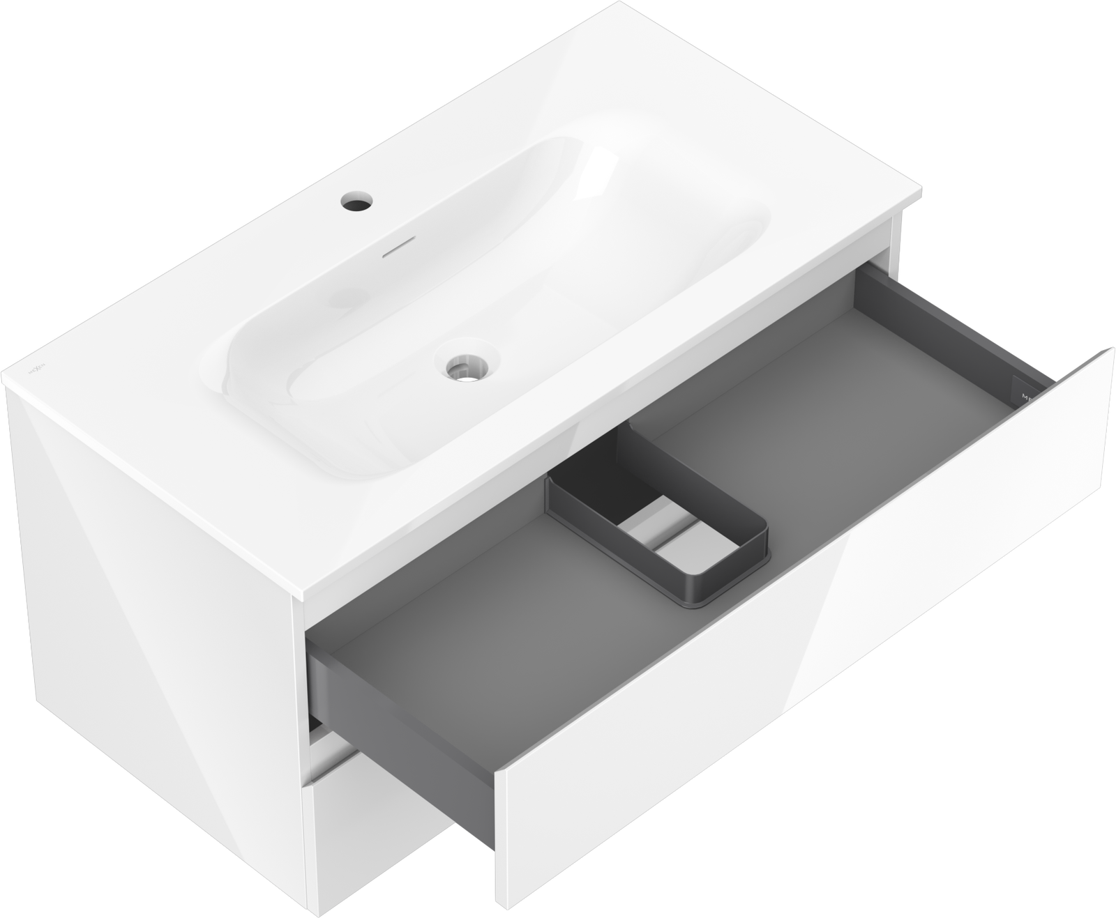 Il ritaglio nel cassetto è progettato in modo da ospitare il sifone, che è necessario nelle installazioni dei lavandini. Grazie a ciò, il mobile può essere montato in modo completamente funzionale, senza dover rinunciare allo spazio nel cassetto a favore dell'installazione.
