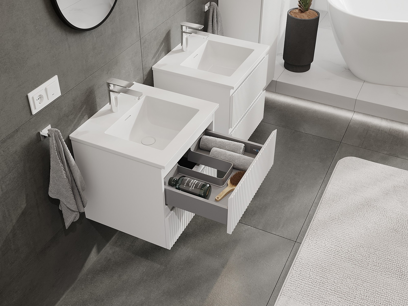 Mexen Rivel mobile da bagno 50 cm con lavabo Otis, 2 cassetti, scanalato, bianco opaco - 91A20-05047-2-BFF01-W18M01