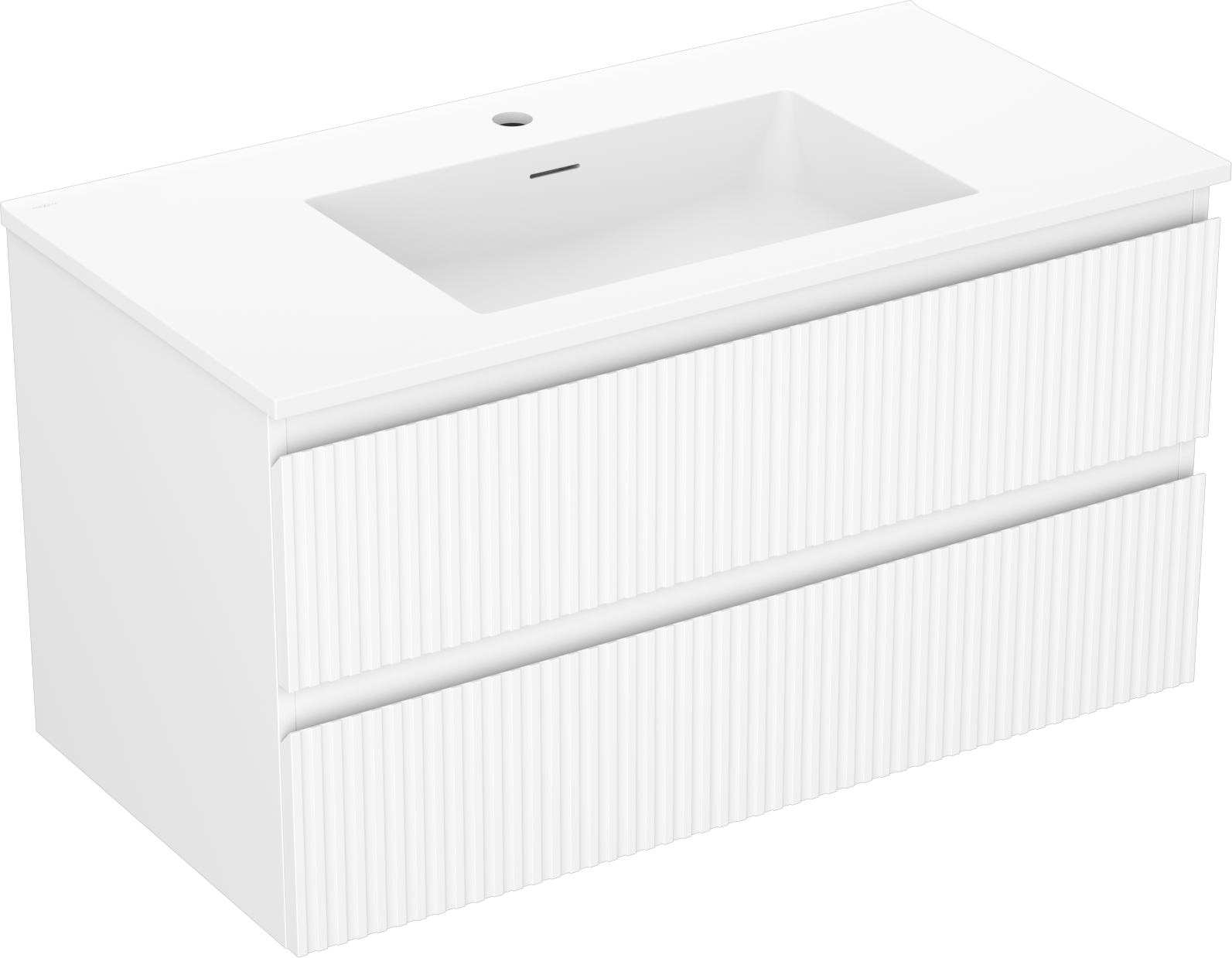 Mexen Rivel mobile bagno 90 cm con lavabo Otis, 2 cassetti, scanalato, bianco opaco - 91A20-09047-2-BFF01-W18M01