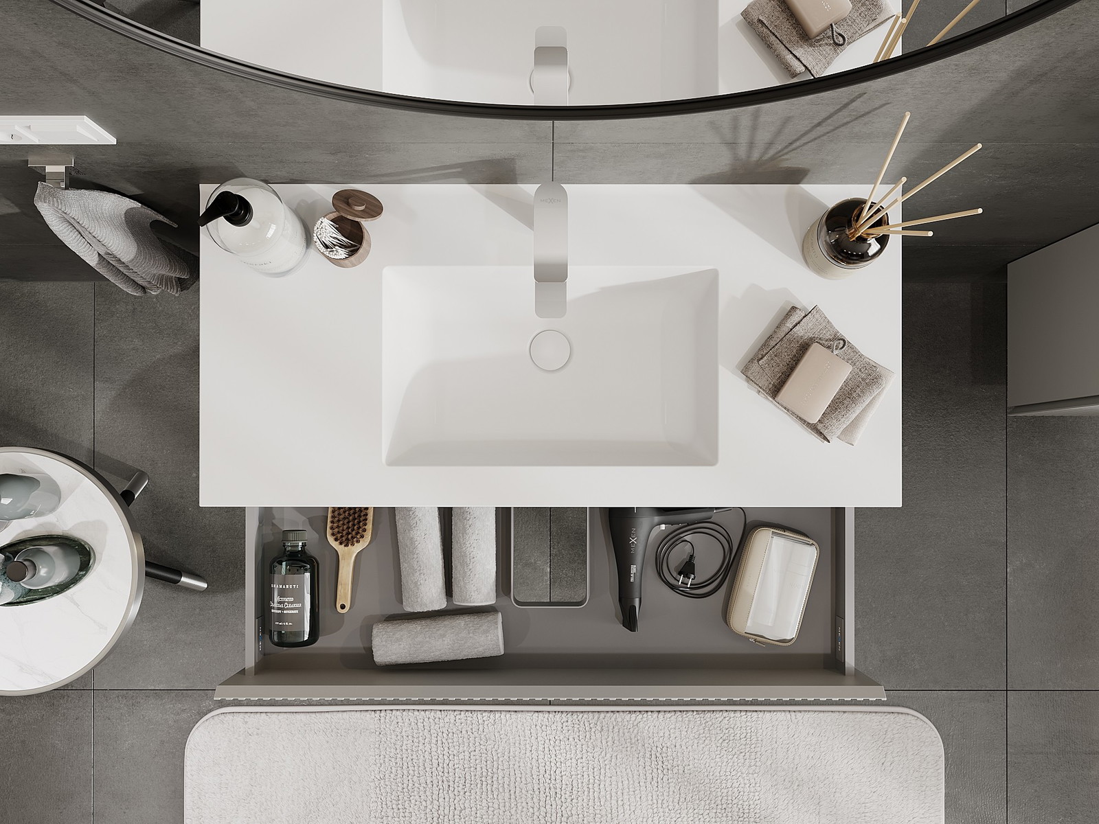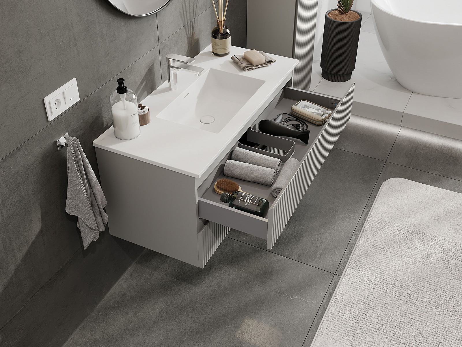 Mexen Rivel armadietto da bagno 100 cm con lavabo Otis, 2 cassetti, scanalato, grigio opaco/bianco opaco