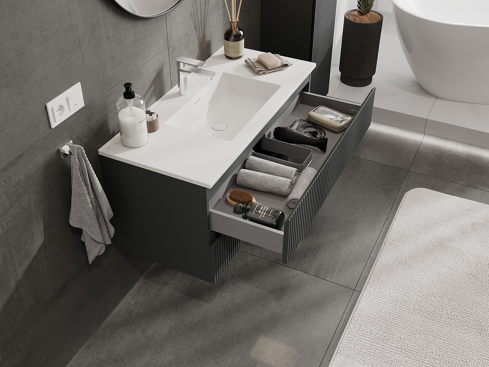 Mexen Rivel mobile bagno 100 cm con lavabo Otis, 2 cassetti, scanalato, grafite opaco/bianco opaco - 91A20-10047-2-BFF66-W18M0