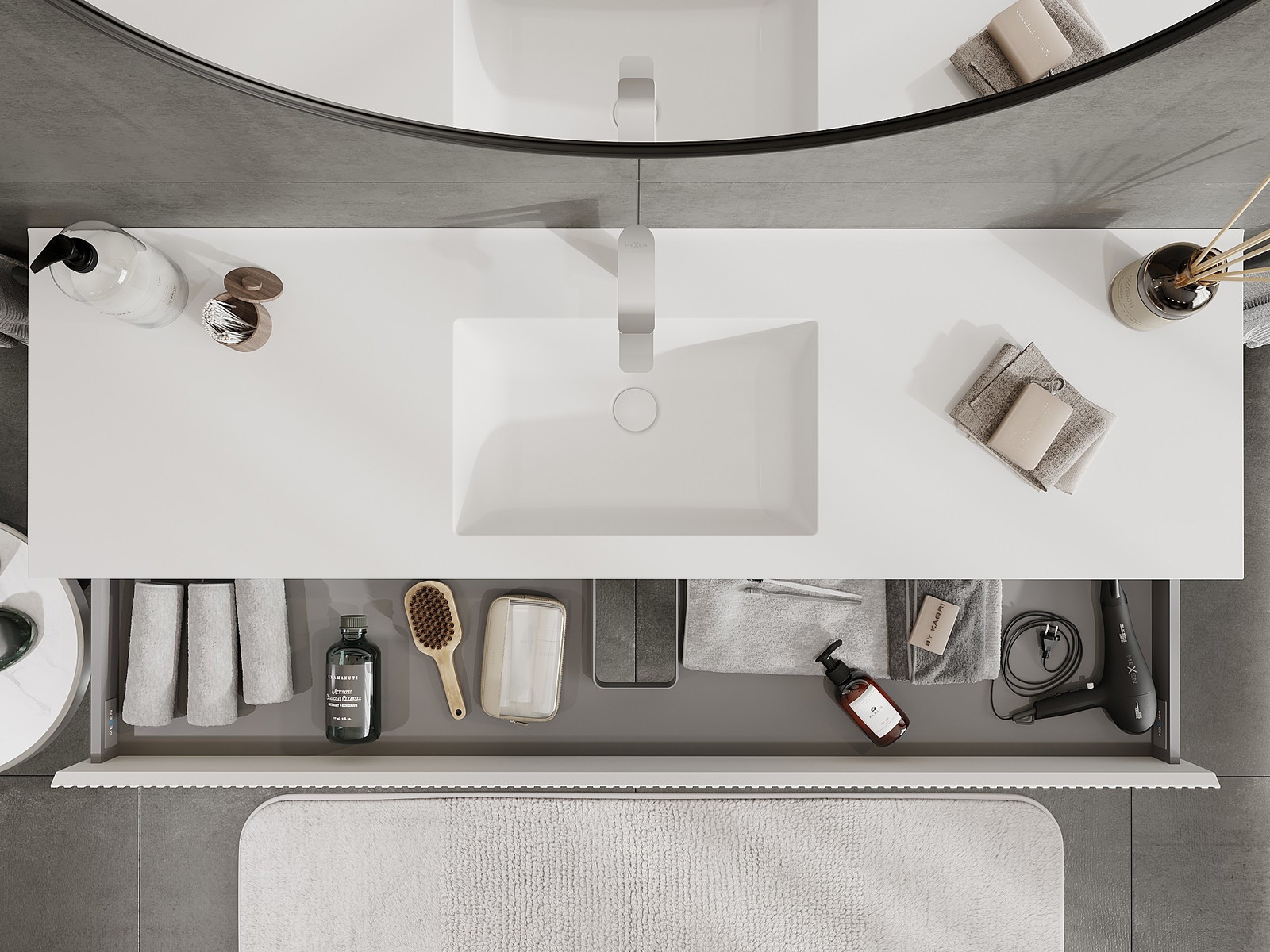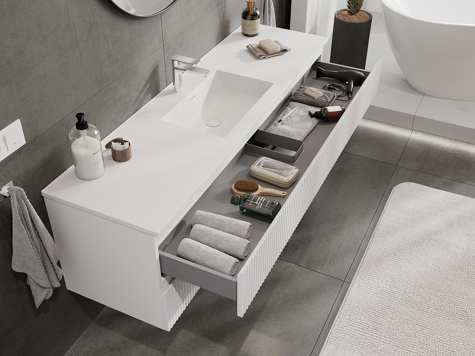 Mexen Rivel mobile da bagno 160 cm con lavabo Otis, 2 cassetti, scanalato, bianco opaco - 91A20-16047-2-BFF01-W18M01