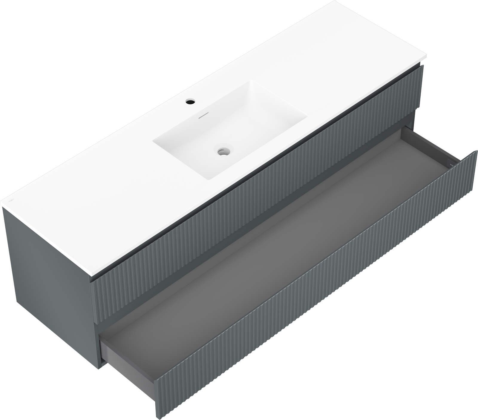 Mexen Rivel mobiletto da bagno 160 cm con lavabo Otis, 2 cassetti, scanalato, grafite opaco/bianco opaco -