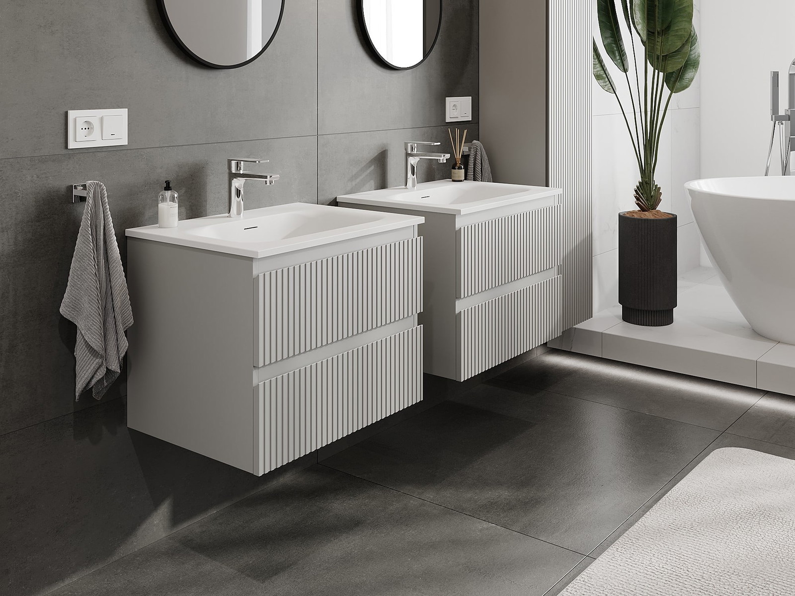 I nostri mobili da bagno modulari possono essere combinati tra loro in diverse configurazioni di colore, consentendo una personalizzazione completa. È possibile scegliere sia l'aspetto che le funzioni dei singoli elementi, permettendo di adattare i mobili alle proprie preferenze stilistiche e di utilizzo.