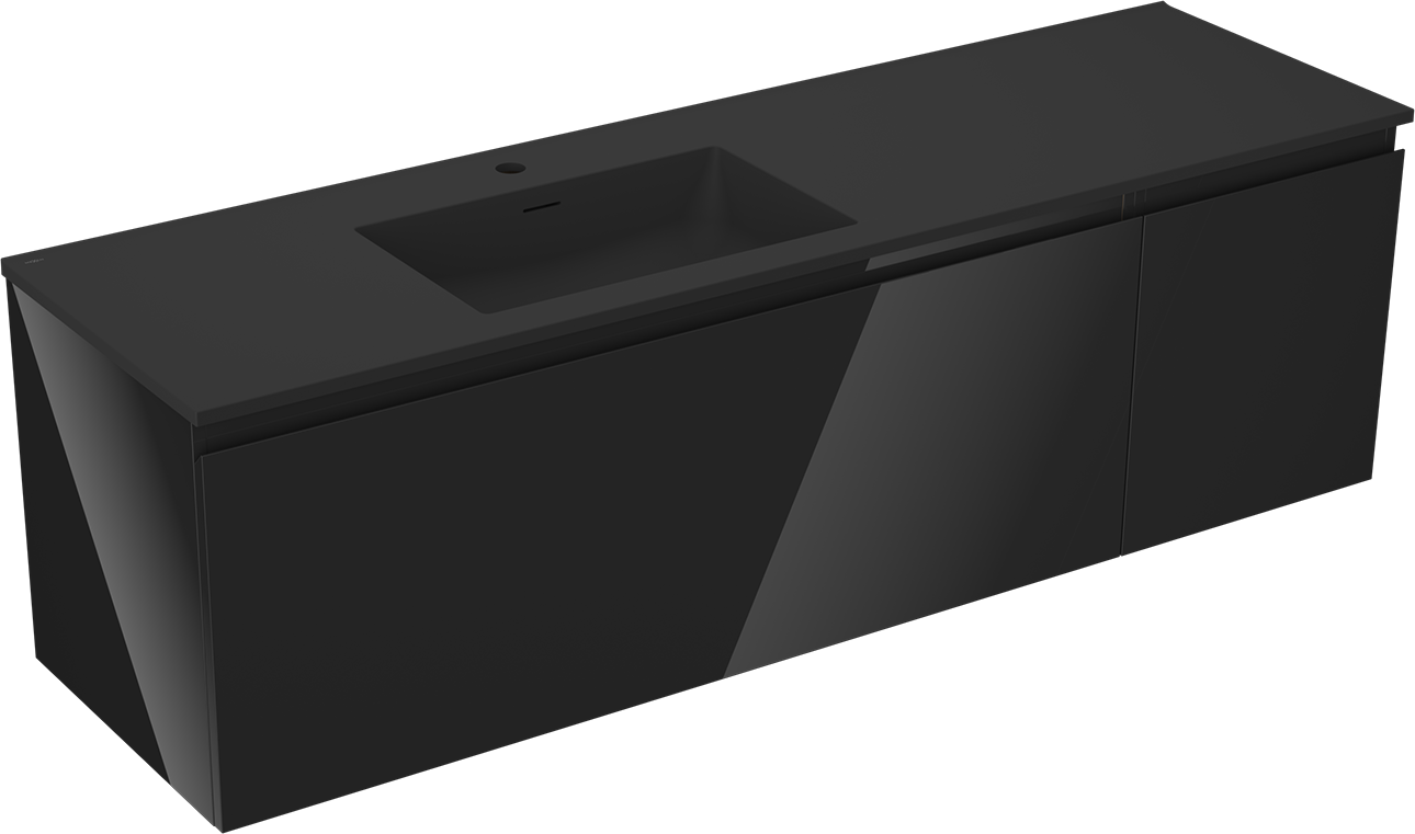 Mexen Orio armadietto da bagno 160 cm con lavabo Otis sinistro, 1S, 1D, nero lucido/nero opaco - 91A13-16047-3-BBFF70-W18L71