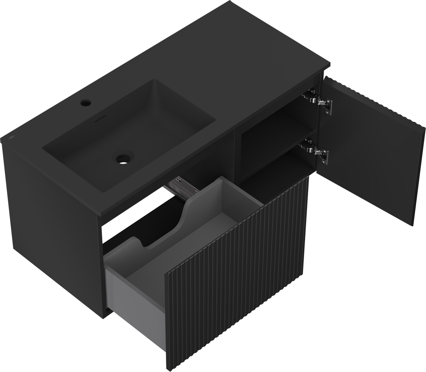 Mexen Rivel armadietto da bagno 100 cm con lavabo Otis sinistro, 1S, 1D, scanalato, nero opaco - 91A23-10047-3-BBFF71-W18L71
