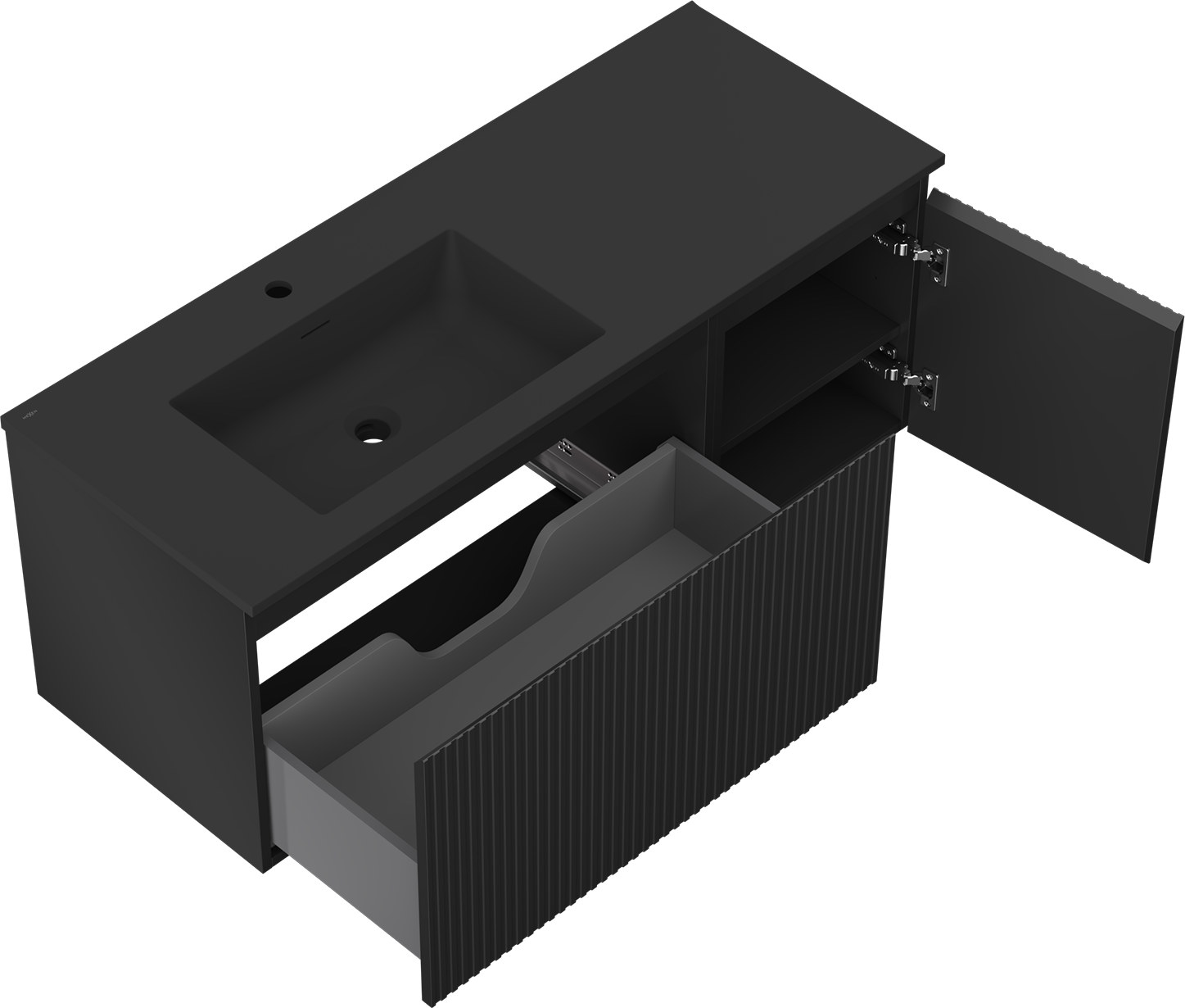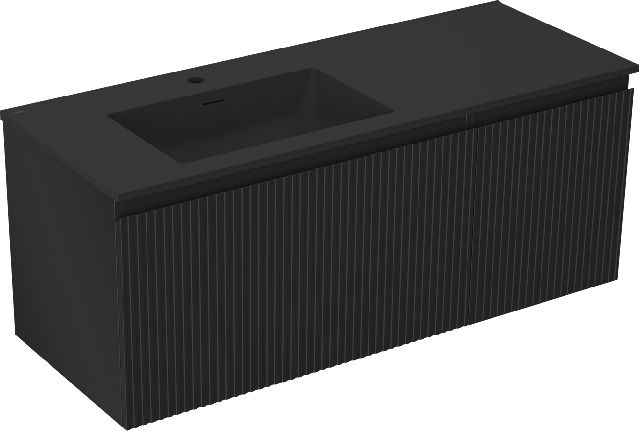 Mexen Rivel armadietto da bagno 120 cm con lavabo Otis sinistro, 1S, 1D, scanalato, nero opaco - 91A23-12047-3-BBFF71-W18L71
