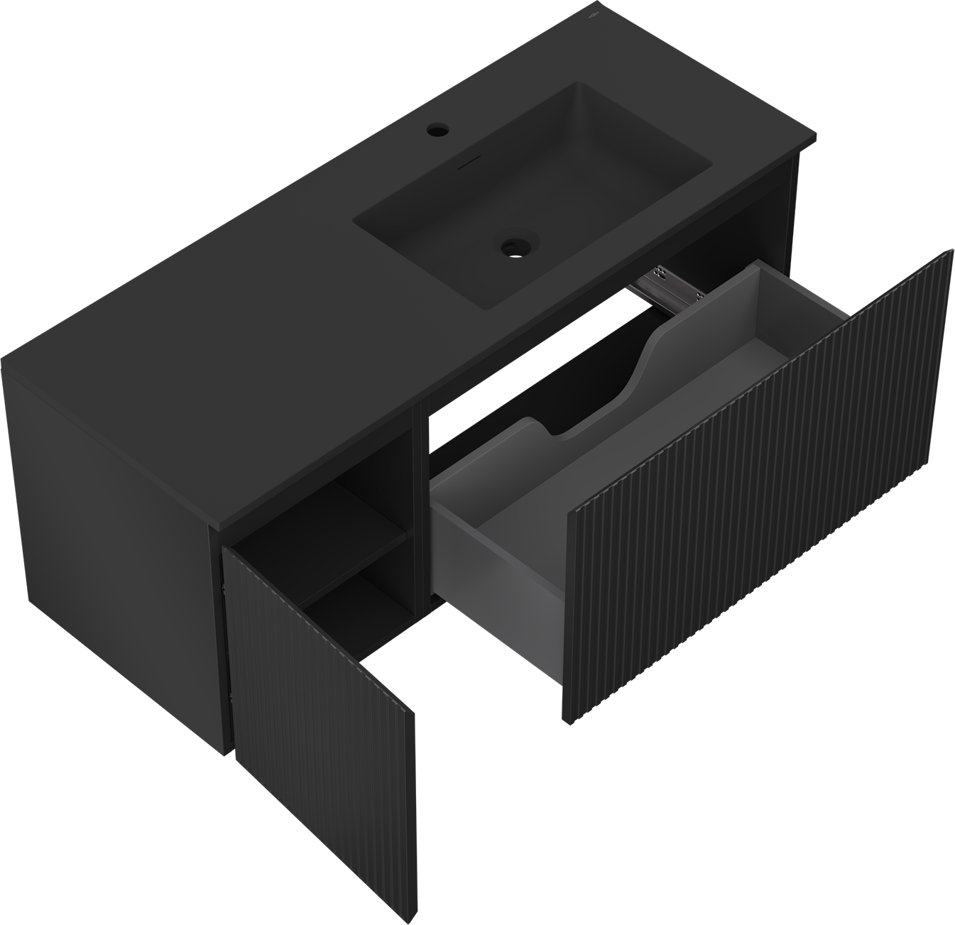 Mexen Rivel mobile da bagno 120 cm con lavandino Otis destro, 1S, 1D, scanalato, nero opaco - 91A23-12047-3-BBFF71-W18P71