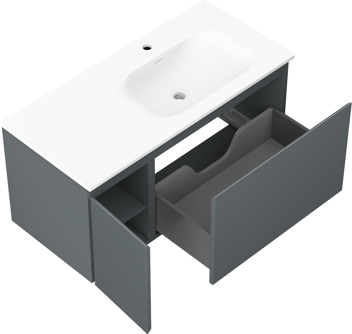 Il ritaglio nel cassetto è progettato in modo da ospitare il sifone, che è necessario nelle installazioni dei lavandini. Grazie a ciò, il mobile può essere montato in modo completamente funzionale, senza dover rinunciare allo spazio nel cassetto a favore dell'installazione.