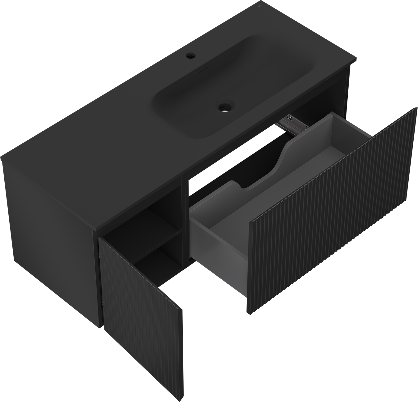 Il ritaglio nel cassetto è progettato in modo da ospitare il sifone, che è necessario nelle installazioni dei lavandini. Grazie a ciò, il mobile può essere montato in modo completamente funzionale, senza dover rinunciare allo spazio nel cassetto a favore dell'installazione.