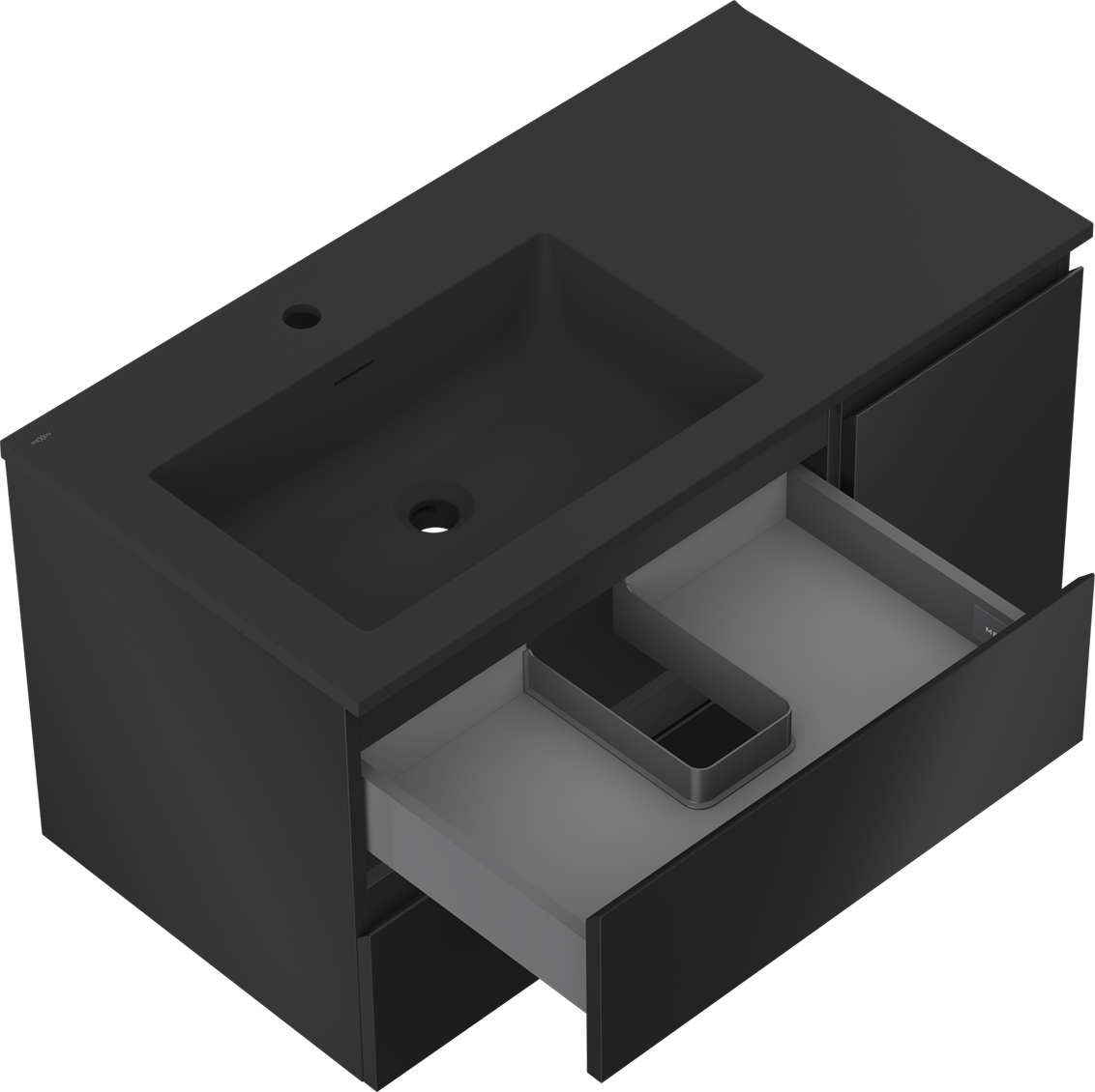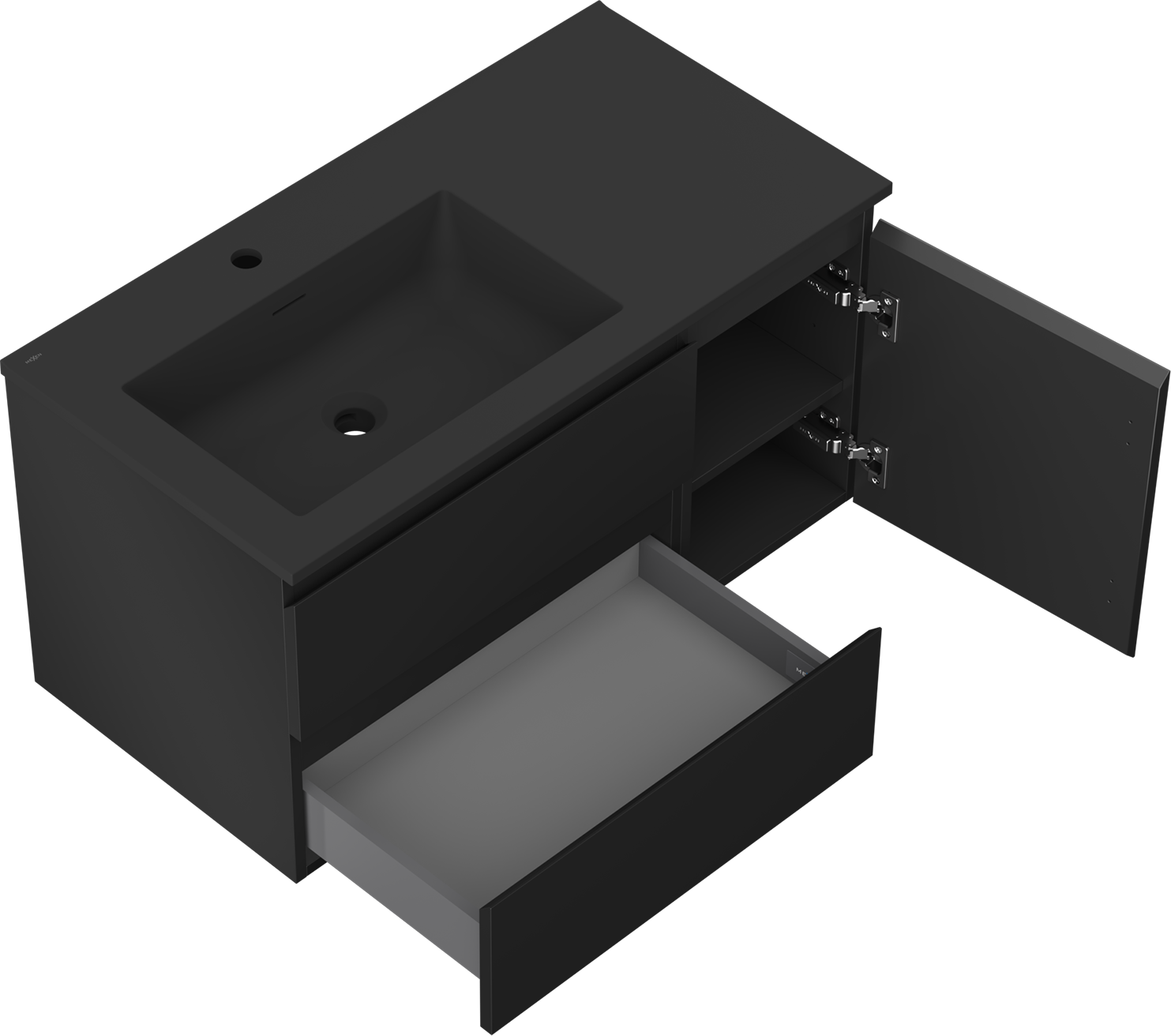 Mexen Orio mobile da bagno 90 cm con lavabo Otis sinistro, 2S, 1D, nero opaco - 91A13-09047-3-BBFFF71-W18L71