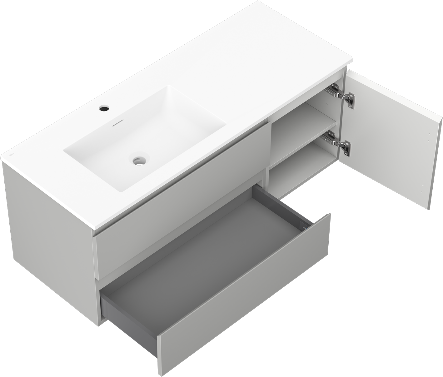 Il ritaglio nel cassetto è progettato in modo da ospitare il sifone, che è necessario nelle installazioni dei lavandini. Grazie a ciò, il mobile può essere montato in modo completamente funzionale, senza dover rinunciare allo spazio nel cassetto a favore dell'installazione.