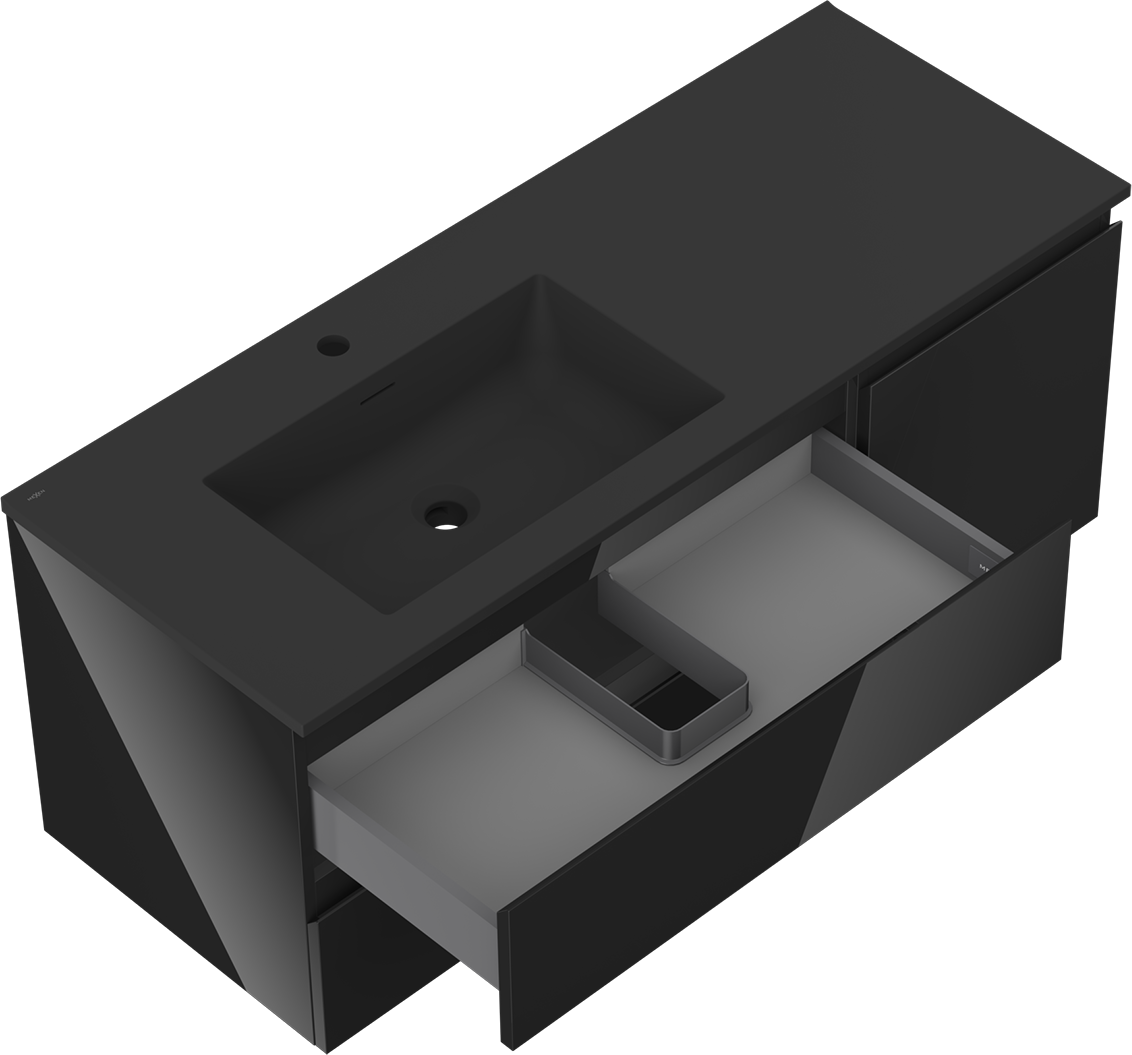 Il ritaglio nel cassetto è progettato in modo da ospitare il sifone, che è necessario nelle installazioni dei lavandini. Grazie a ciò, il mobile può essere montato in modo completamente funzionale, senza dover rinunciare allo spazio nel cassetto a favore dell'installazione.