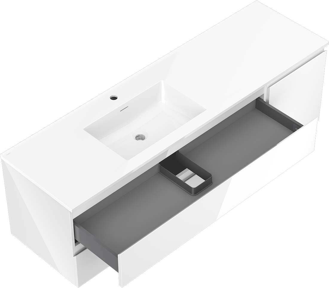 Il ritaglio nel cassetto è progettato in modo da ospitare il sifone, che è necessario nelle installazioni dei lavandini. Grazie a ciò, il mobile può essere montato in modo completamente funzionale, senza dover rinunciare allo spazio nel cassetto a favore dell'installazione.