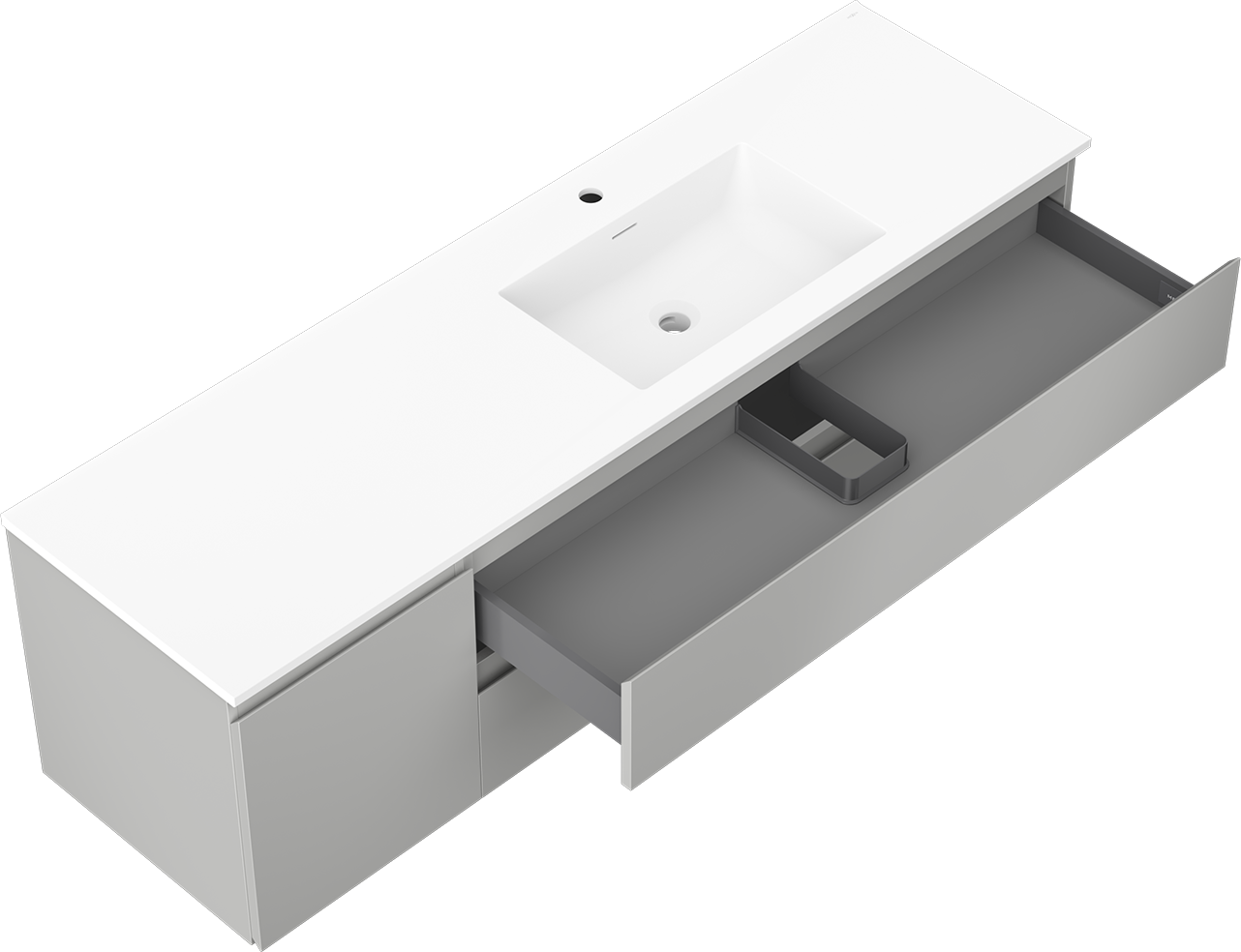 Il ritaglio nel cassetto è progettato in modo da ospitare il sifone, che è necessario nelle installazioni dei lavandini. Grazie a ciò, il mobile può essere montato in modo completamente funzionale, senza dover rinunciare allo spazio nel cassetto a favore dell'installazione.