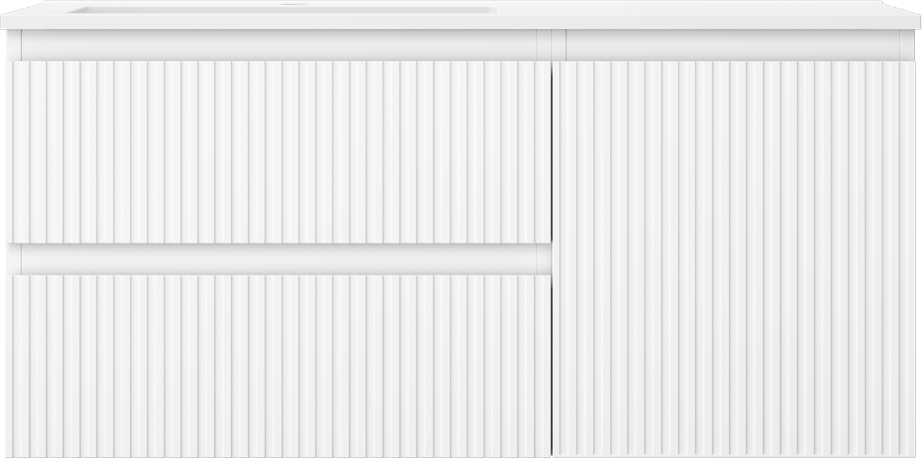 Il ritaglio nel cassetto è progettato in modo da ospitare il sifone, che è necessario nelle installazioni dei lavandini. Grazie a ciò, il mobile può essere montato in modo completamente funzionale, senza dover rinunciare allo spazio nel cassetto a favore dell'installazione.