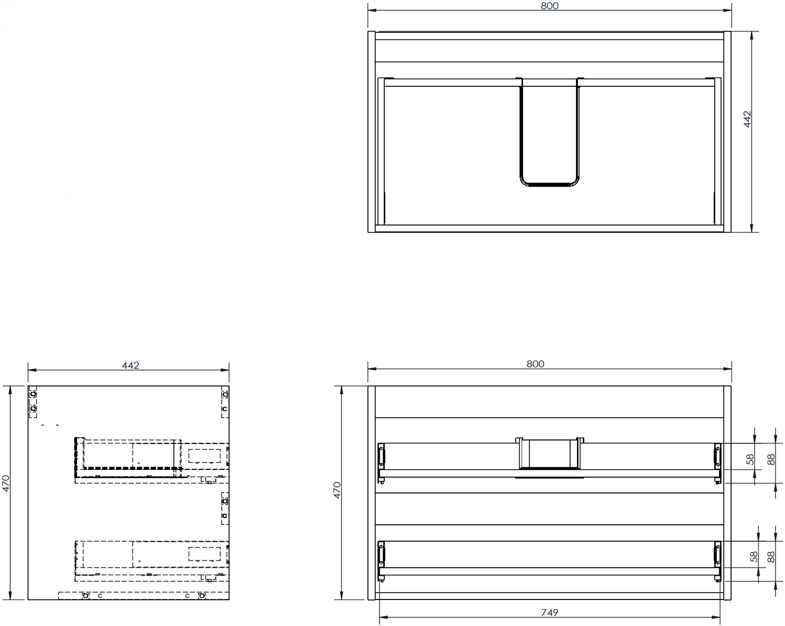 Armadietto sotto lavabo con cassetti: