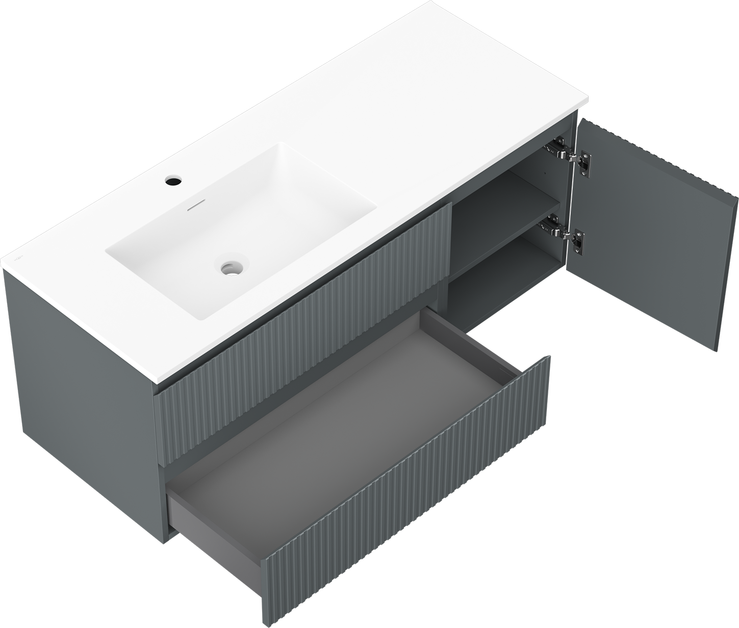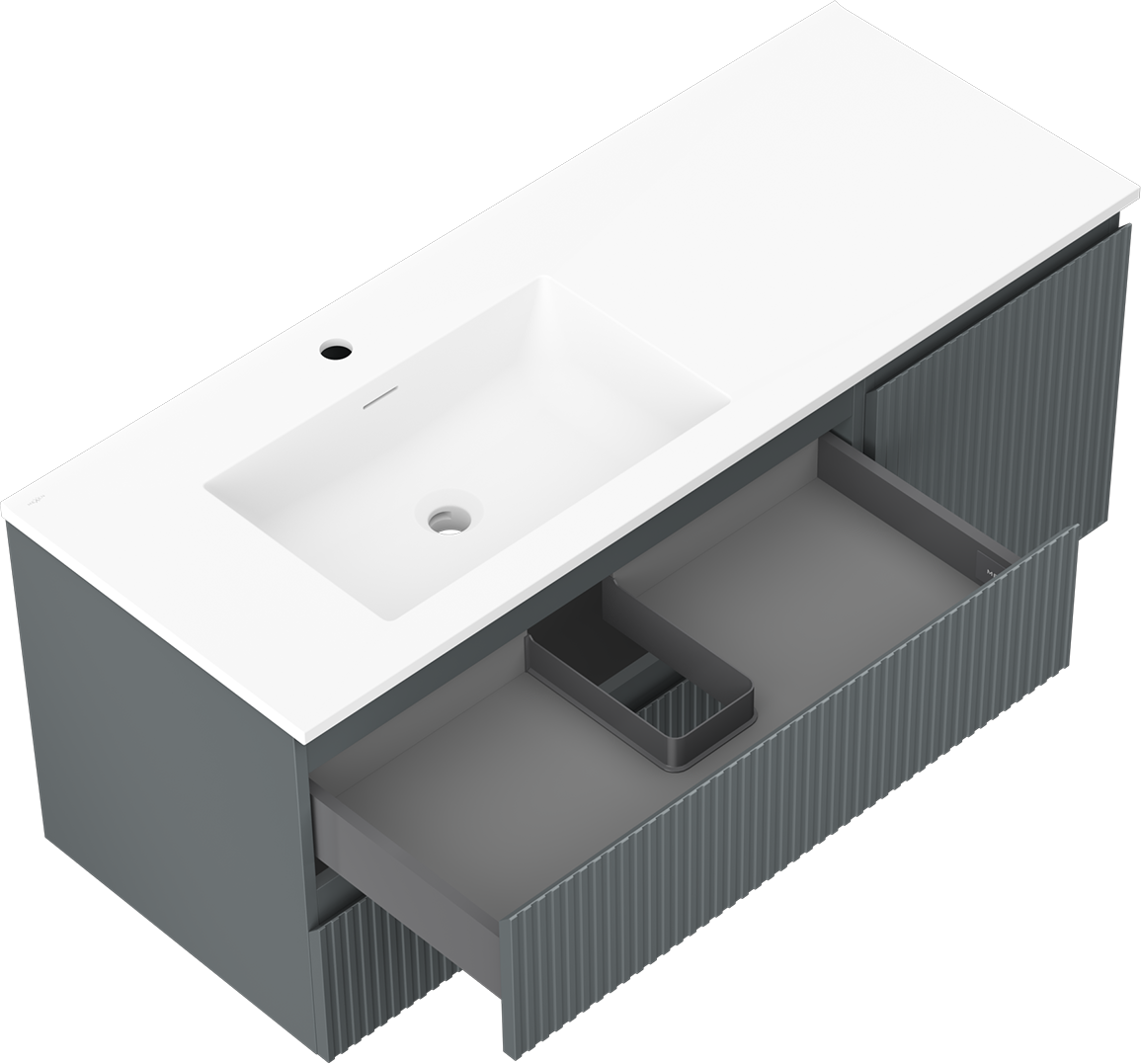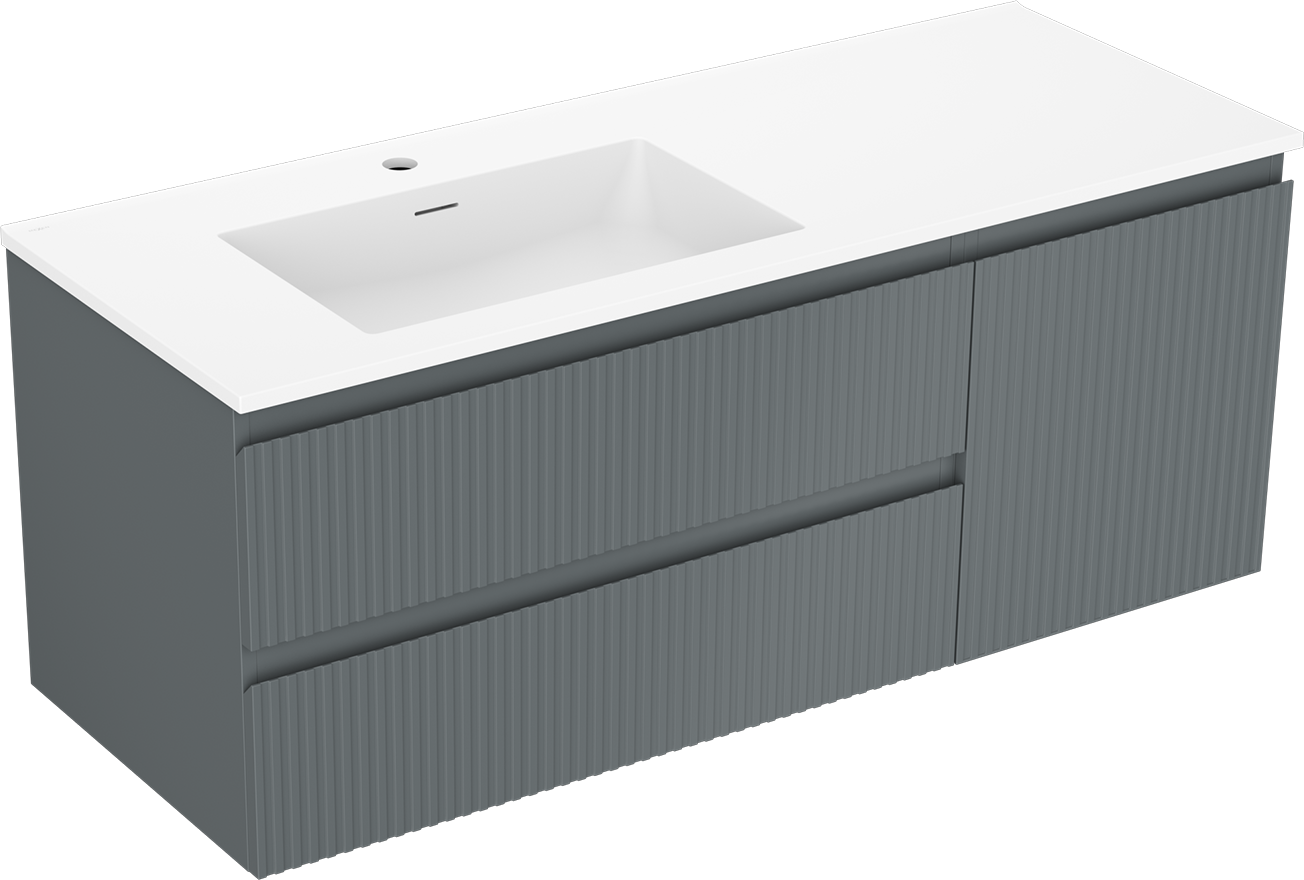 Il ritaglio nel cassetto è progettato in modo da ospitare il sifone, che è necessario nelle installazioni dei lavandini. Grazie a ciò, il mobile può essere montato in modo completamente funzionale, senza dover rinunciare allo spazio nel cassetto a favore dell'installazione.