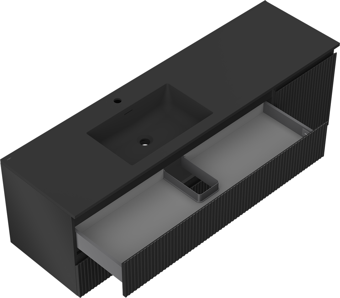 Il ritaglio nel cassetto è progettato in modo da ospitare il sifone, che è necessario nelle installazioni dei lavandini. Grazie a ciò, il mobile può essere montato in modo completamente funzionale, senza dover rinunciare allo spazio nel cassetto a favore dell'installazione.