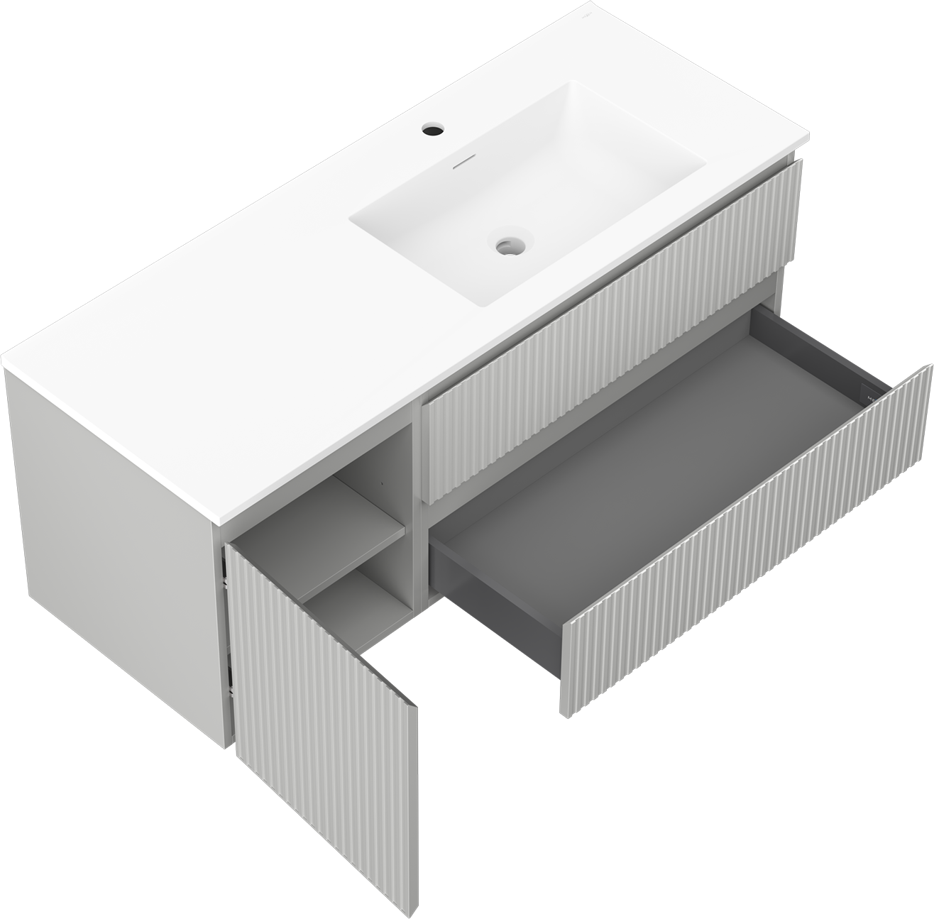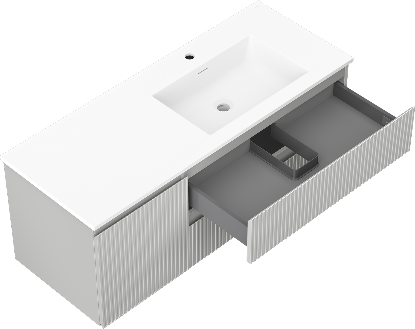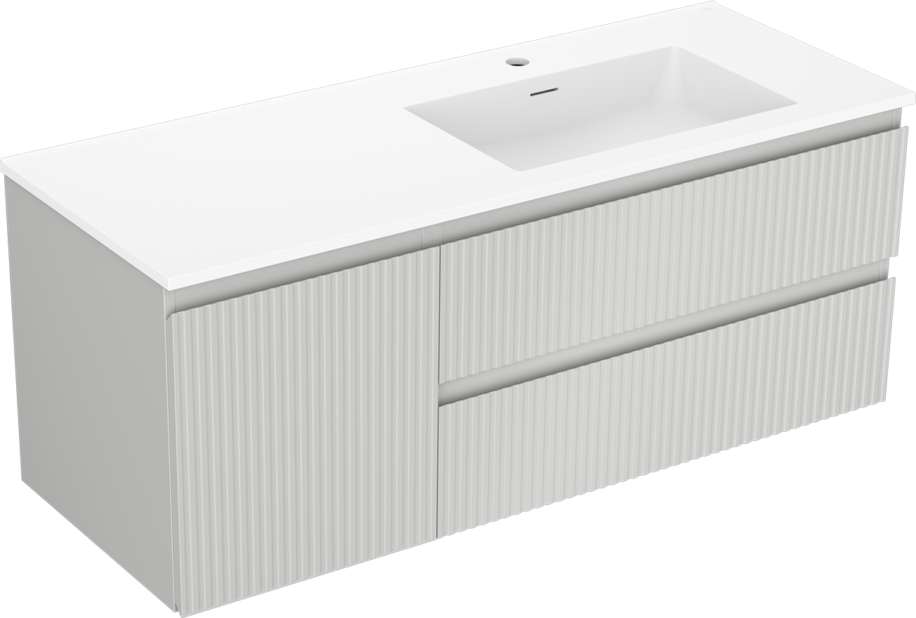 Il ritaglio nel cassetto è progettato in modo da ospitare il sifone, che è necessario nelle installazioni dei lavandini. Grazie a ciò, il mobile può essere montato in modo completamente funzionale, senza dover rinunciare allo spazio nel cassetto a favore dell'installazione.