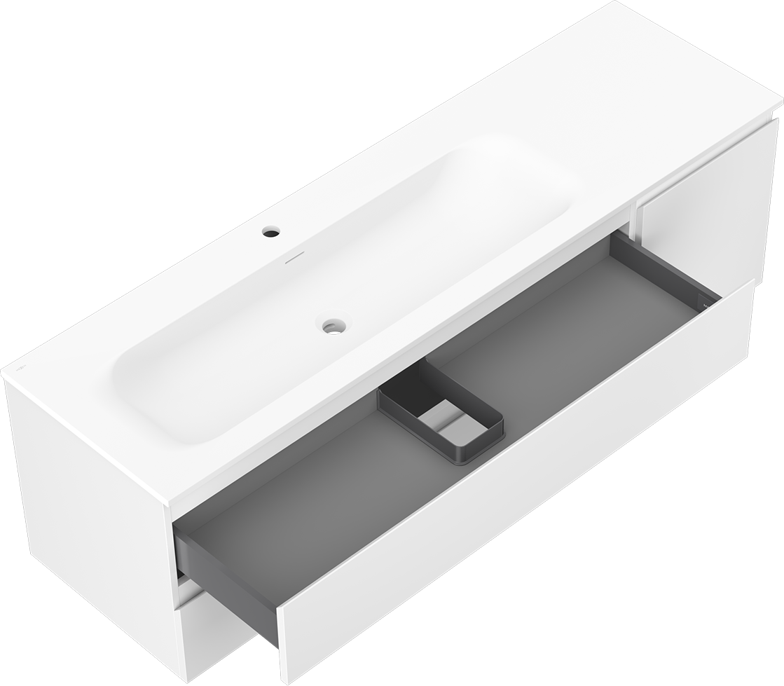 Il ritaglio nel cassetto è progettato in modo da ospitare il sifone, che è necessario nelle installazioni dei lavandini. Grazie a ciò, il mobile può essere montato in modo completamente funzionale, senza dover rinunciare allo spazio nel cassetto a favore dell'installazione.