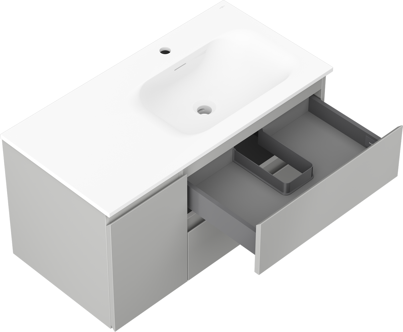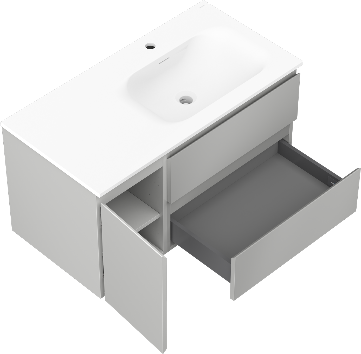 Il ritaglio nel cassetto è progettato in modo da ospitare il sifone, che è necessario nelle installazioni dei lavandini. Grazie a ciò, il mobile può essere montato in modo completamente funzionale, senza dover rinunciare allo spazio nel cassetto a favore dell'installazione.