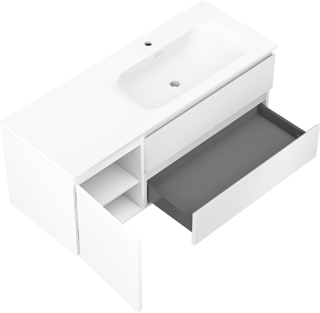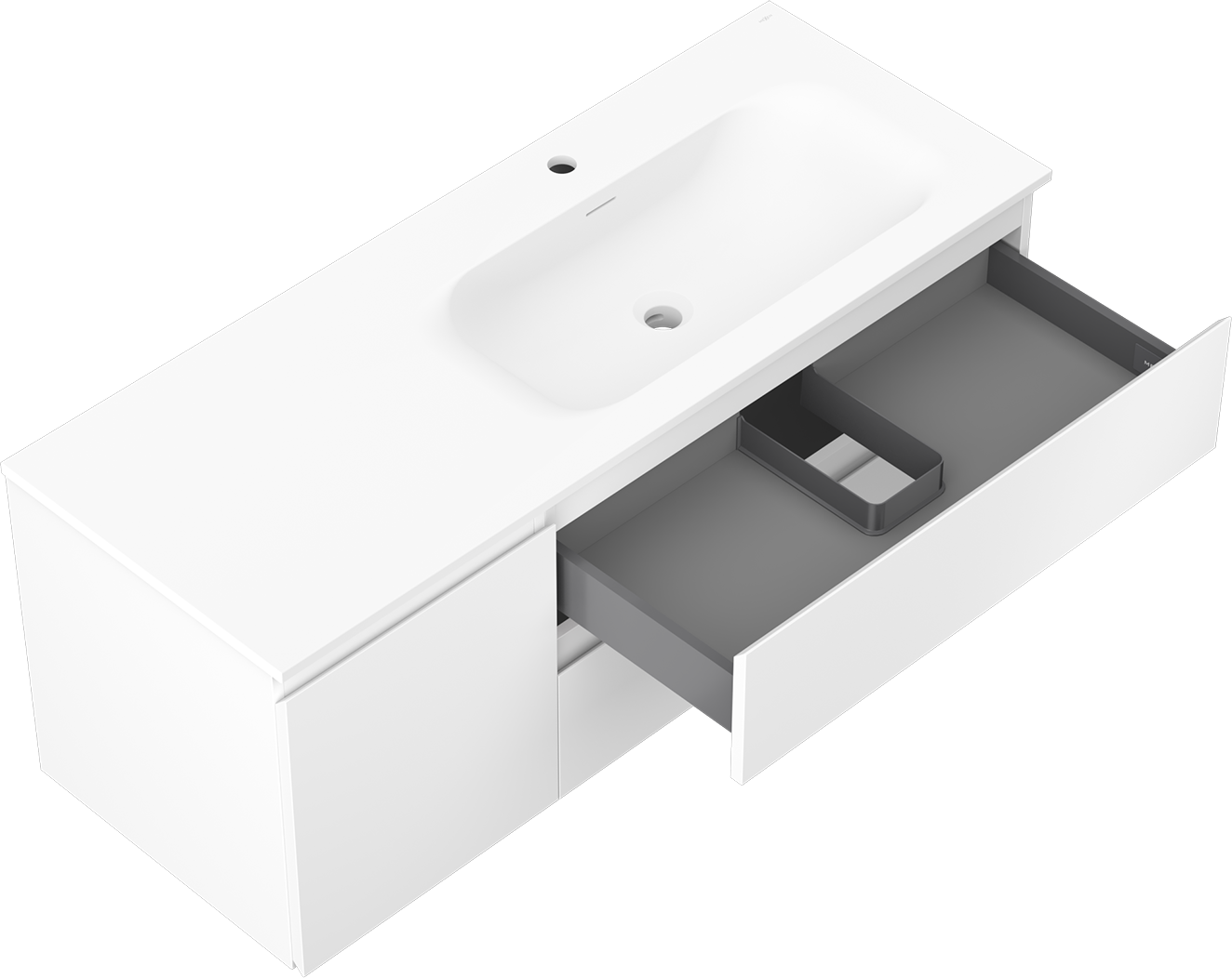 Il ritaglio nel cassetto è progettato in modo da ospitare il sifone, che è necessario nelle installazioni dei lavandini. Grazie a ciò, il mobile può essere montato in modo completamente funzionale, senza dover rinunciare allo spazio nel cassetto a favore dell'installazione.