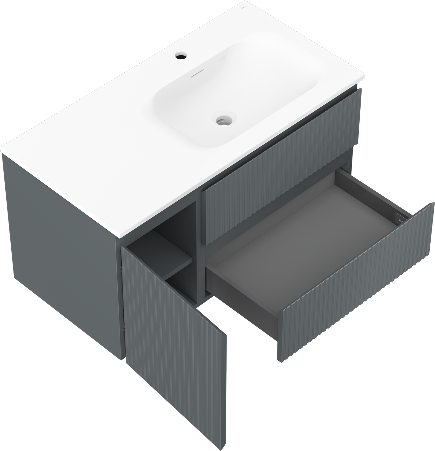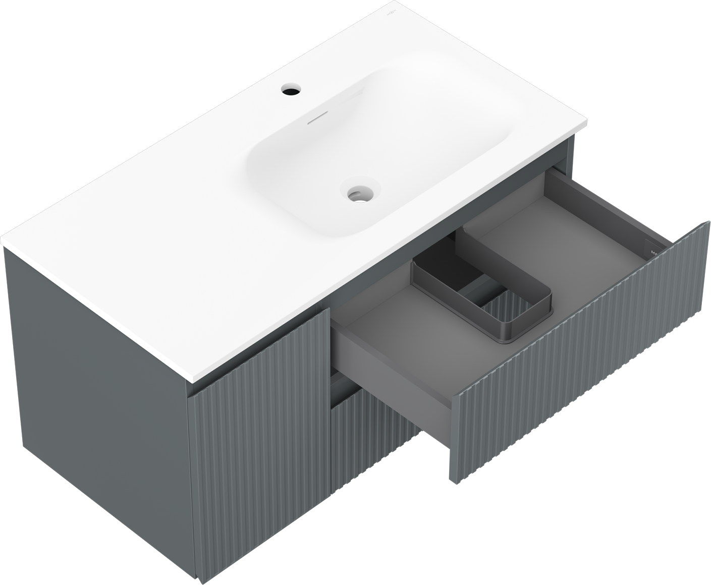 Il ritaglio nel cassetto è progettato in modo da ospitare il sifone, che è necessario nelle installazioni dei lavandini. Grazie a ciò, il mobile può essere montato in modo completamente funzionale, senza dover rinunciare allo spazio nel cassetto a favore dell'installazione.