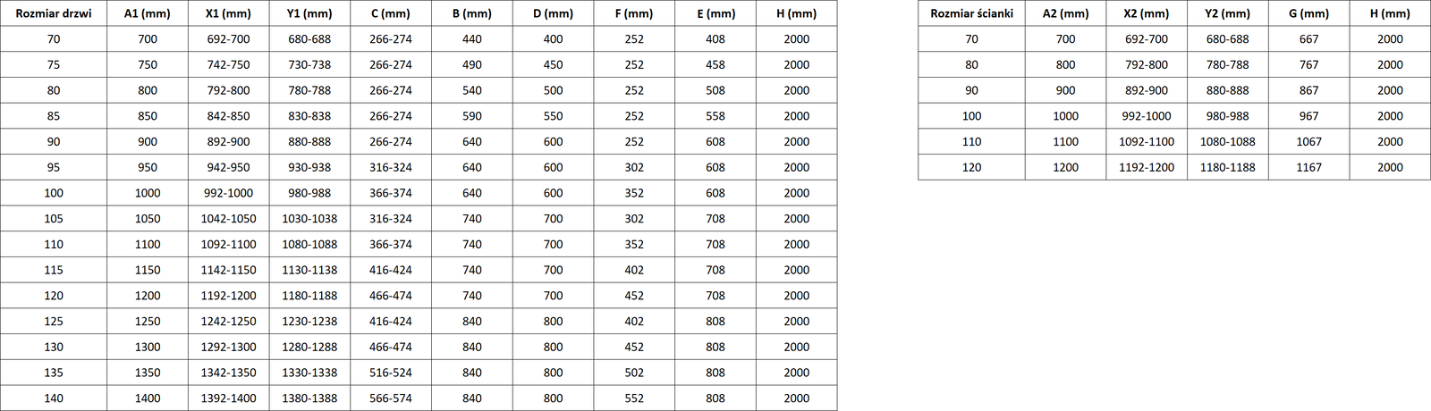 Dimensione: 100x90 cm (porta sinistra 100 cm, parete 90 cm)