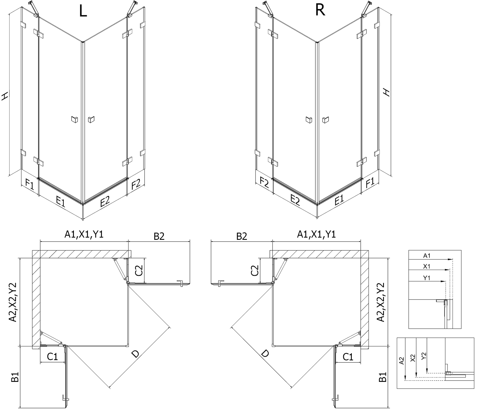 Dimensioni: 80x70 cm (porta destra 80 cm, porta sinistra 70 cm)