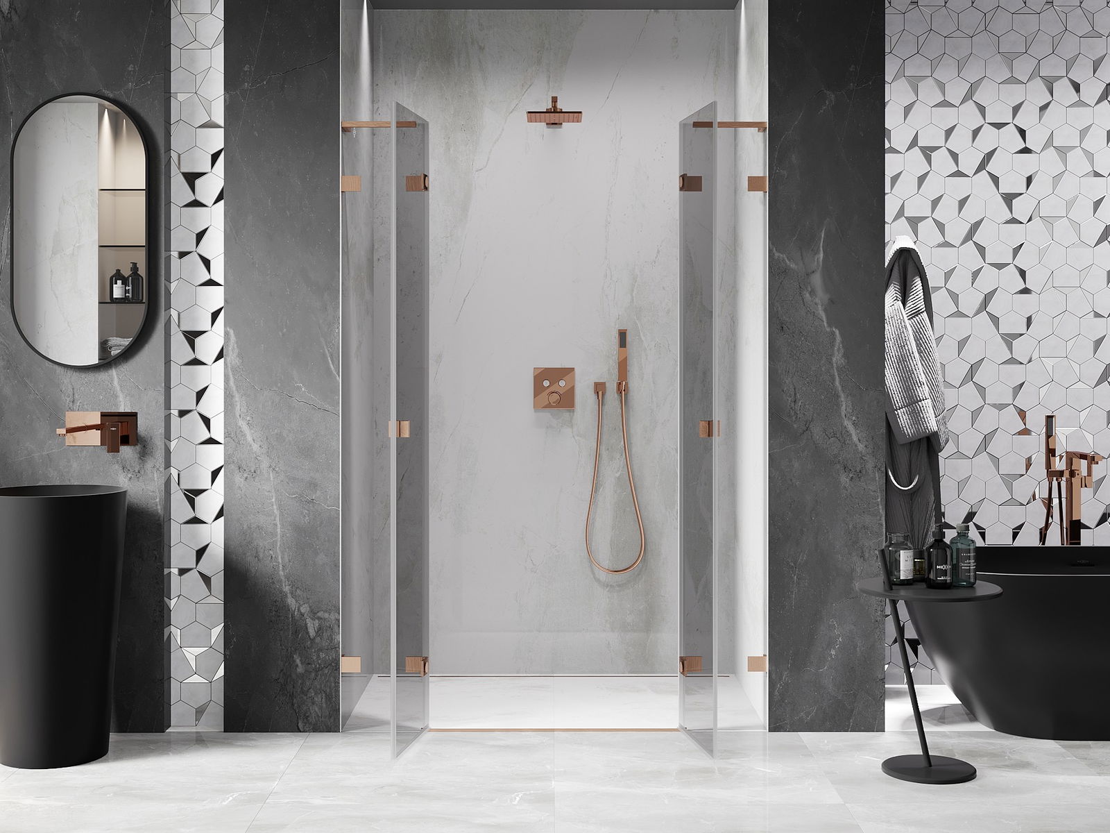 Mexen Lunar L Duo porta doccia battente 140 cm, trasparente, rame spazzolato - 834DL-140-000-65-00