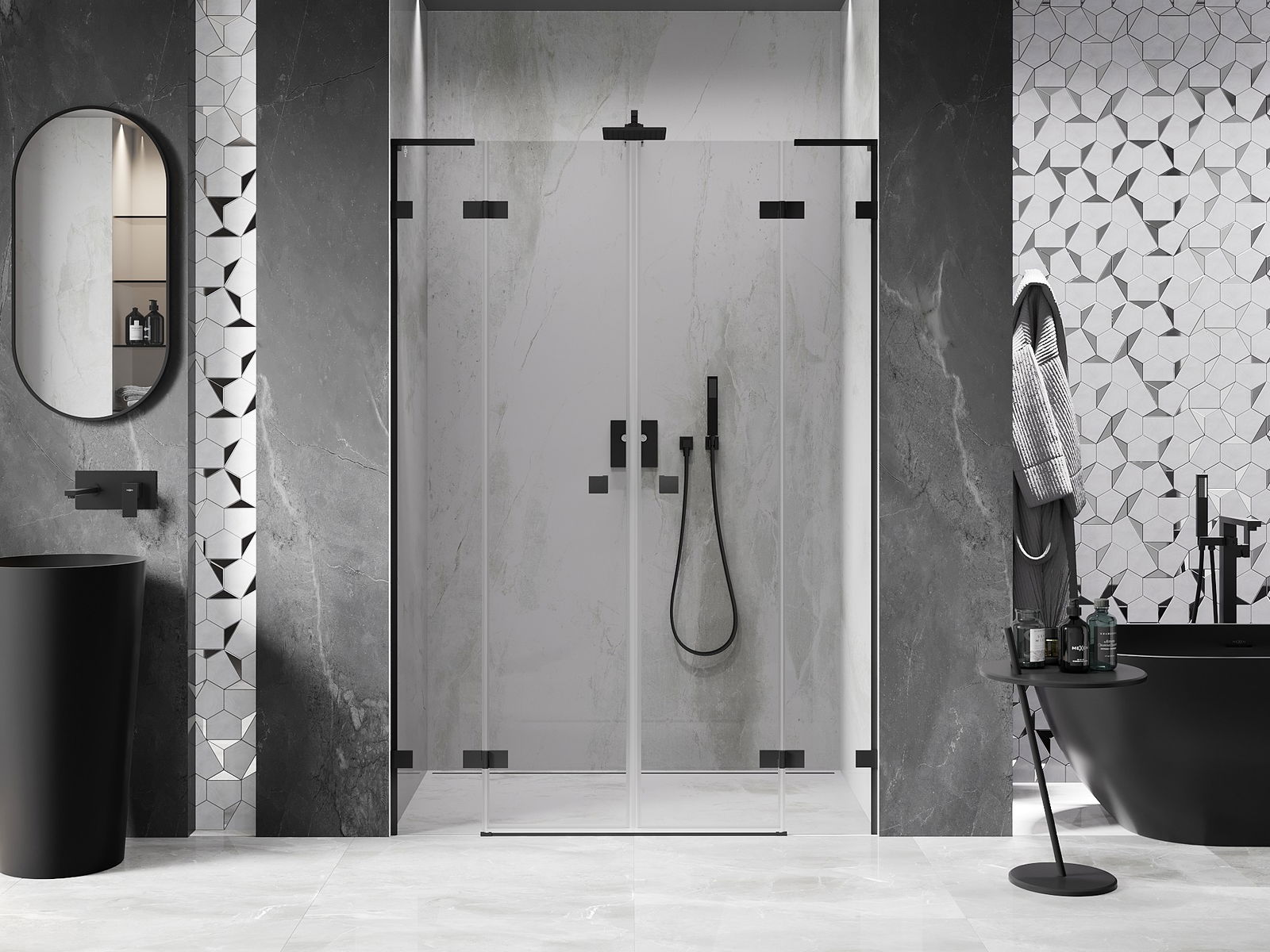 Mexen Rio cabina doccia quadrata 90 x 90 cm, trasparente, nera - 860-090-090-70-00
